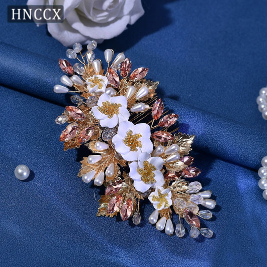 YouLaPan Gold Floral Wedding Hair Comb Bridal Crystal Pearls Headpiece Hair Accessories Bride Jewelry Women Hair Clips HP368