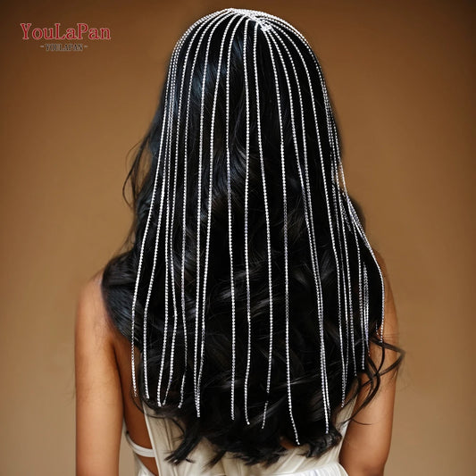 YouLaPan Shine Full Rhinestone Chain Headband Women Long Tassel Crystal Hair Accessories Wedding Banquet Jewelry Tiara HP778