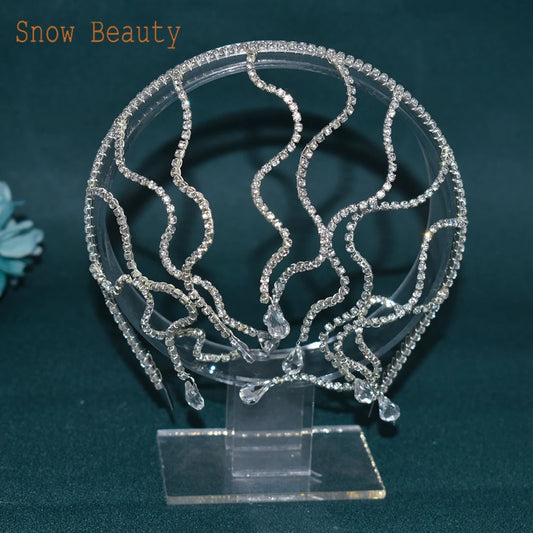A446 Handmade Water Drop Diamond Tiara Wedding Headband for Bride Bridesmaid Bridal Headpieces Hair Accessories for Prom Party