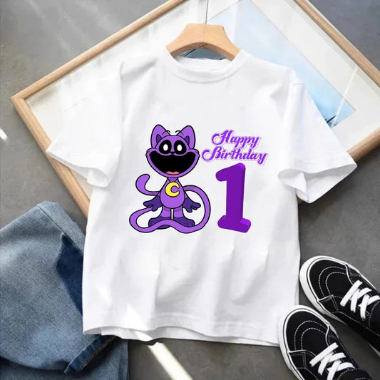 تي شيرتات Smilings Critters ملابس بأكمام قصيرة ورسوم متحركة ورسومات قطط وأرقام من 1 إلى 10 سنوات ملابس مطبوعة وقمصان كاجوال