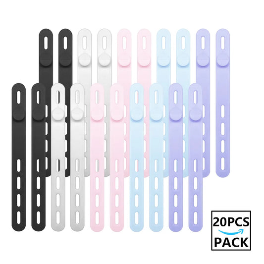 20 قطعة من أربطة الكابلات المصنوعة من السيليكون بألوان متنوعة، قابلة لإعادة الاستخدام، منظم كابلات عالي التحمل لإدارة ربط الأسلاك وأشرطة الكابلات