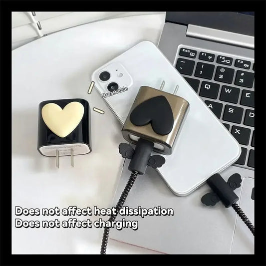 حافظة حماية كابل شاحن من النوع C ومجموعة إدارة لفاف لأسلاك 14 و13 و12 و18 و20 وات على شكل قلب
