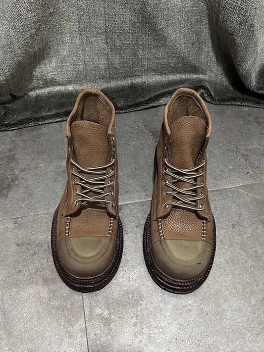 حذاء رجالي عتيق من الجلد الأصلي برباط للإغلاق حذاء قصير برقبة عالية مناسب للشارع الرئيسي حذاء رجالي قصير مناسب للدراجة النارية