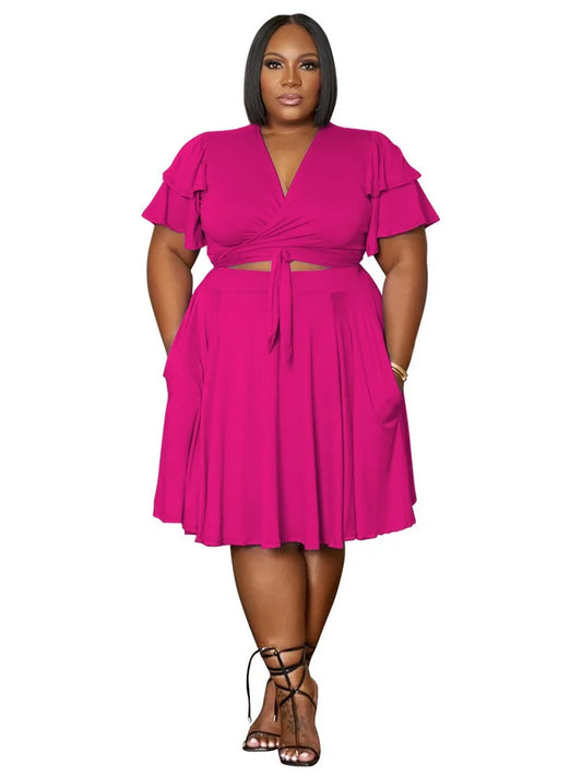 طقم ملابس نسائية مكون من قطعتين من Wmstar برقبة على شكل حرف V وتنورة قصيرة مع جيوب، جديد في ملابس الصيف المتطابقة للبيع بالجملة عبر دروبشيبينغ