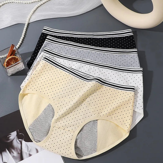 سراويل داخلية مريحة وجيدة التهوية من القطن بنقاط البولكا وخصر متوسط ومضادة للتسرب