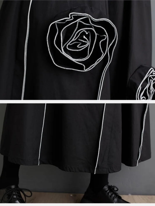 طقم مكون من قطعتين كبير الحجم لفصل الربيع للنساء، قمصان نسائية من Flower Modis، بلوزات كورية فضفاضة مكشكشة ذات خصر مرتفع وتنورة متوسطة الطول للنساء