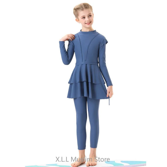 3 Pieces Set Muslim Kids Red Gray Swimwear Girl With Swim Cap Burkini Femme Musulmane Swimsuit Clothing Trajes De Baño Mujer