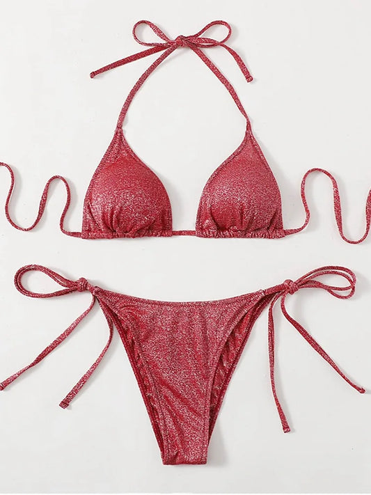 NHKDSASA Swimsuit 2022 New Swimwear Plus Size Bikini Set Arrival Halter Bandage Push Up Brazilian Biquini Separate Swimsuit