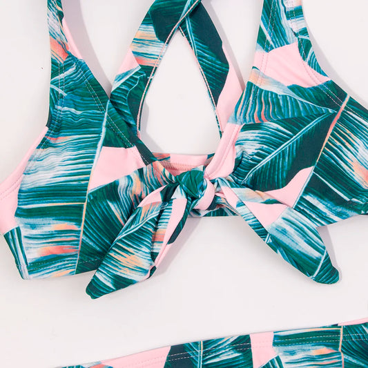 Leaf Print Bandage Girls Kids Swimwear Swimsuit 7-14 Years Falbala Children Bikini Set Wholesale Brand Baby Biquini Infantil 278
