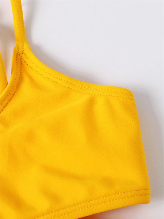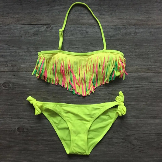 Solid Tassel Girls Bikinis 2023 Kids Swimwear Swimsuit Summer Beach Children Bandage Biquinis 5-12 Years Teens Baby Bathing Suit