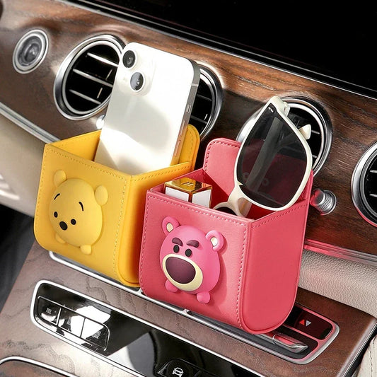 1pc Car Storage Bag Car Air Outlet Debris Bag For Mobile Phone Key Sunglasses Vent Dashboard Tidy Hanging Leather Organizer Box unique