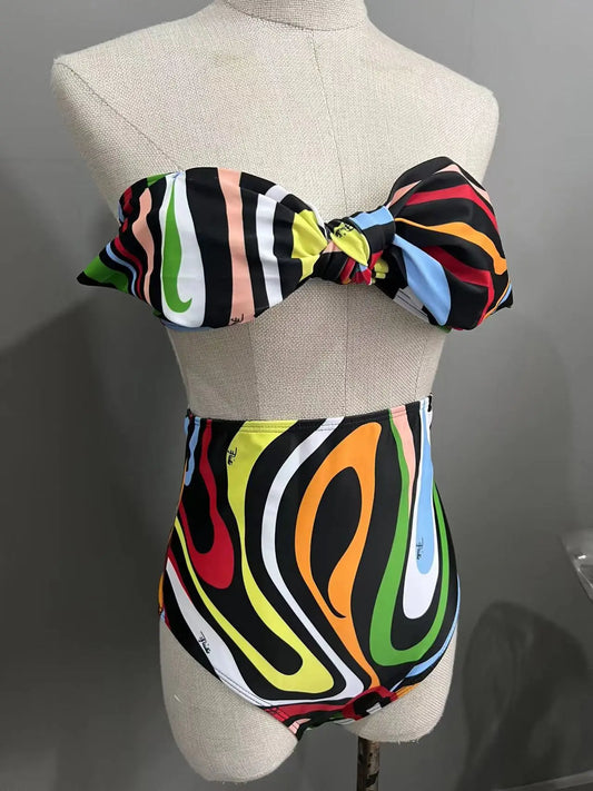 2025 High Waist Bikini Bow Bikinis Women Swimwear With Skirt Beachwear Colorful Bathsuit