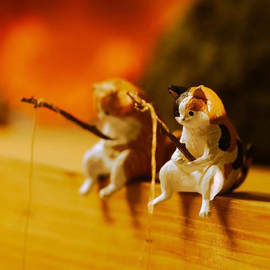 YELL Fish Tank Fishing Cat Hanging Creative Ornament Fishing Mini Decoration Micro Landscape Gachapon Toy Doll Gashapon Figures