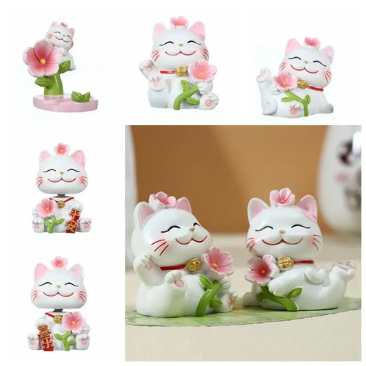 Shake Head Lucky Cat Car Decoration Cartoon Cat Waving Arm Mini Lucky Cat Figure Resin Multipurpose Maneki Neko Ornament