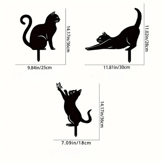 Cat Family Garden Stakes Decorative Cute Cat Garden Decorative Silhouette Animal Outdoor Statues For Cat Yard Garden Lawn