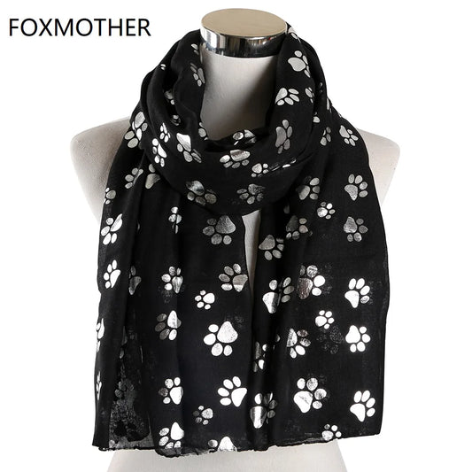 FOXMOTHER New Fashion Foil Sliver White Pink Black Cat Dog Paw Scarf For Pet Dog Lover Mother Gifts Women Scarves