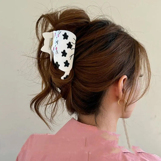 Cute cat large plate hairpin on the back of the woman's head, shark clip grip clip hairpin head