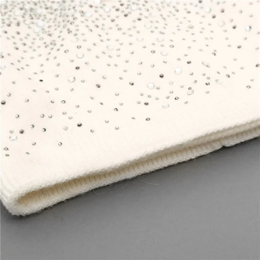 [Xthree] قبعة شتوية نسائية من فرو الأرنب وقبعة محبوكة من صوف المنك للنساء قبعات لامعة مرصعة بأحجار الراين للنساء