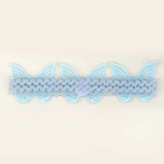 Oaoleer Blue Lace Butterfly Headband Mesh Butterfly Hairband for Baby Girl Soft Elastic Nylon Hair Band Toddler Hair Accessories