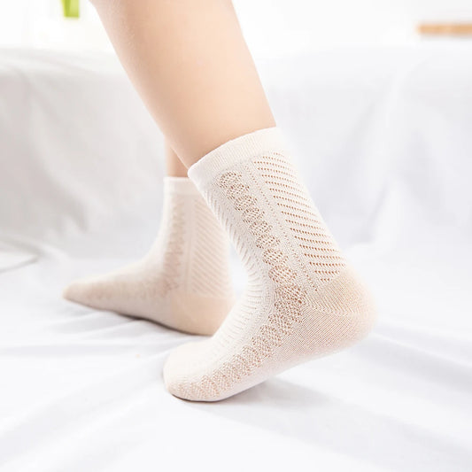 5Pairs/lot 1-10Y Solid White Kids Socks for Boys Girls Cotton Mesh Cute Newborn Boy Toddler Socks Baby Clothes Accessories