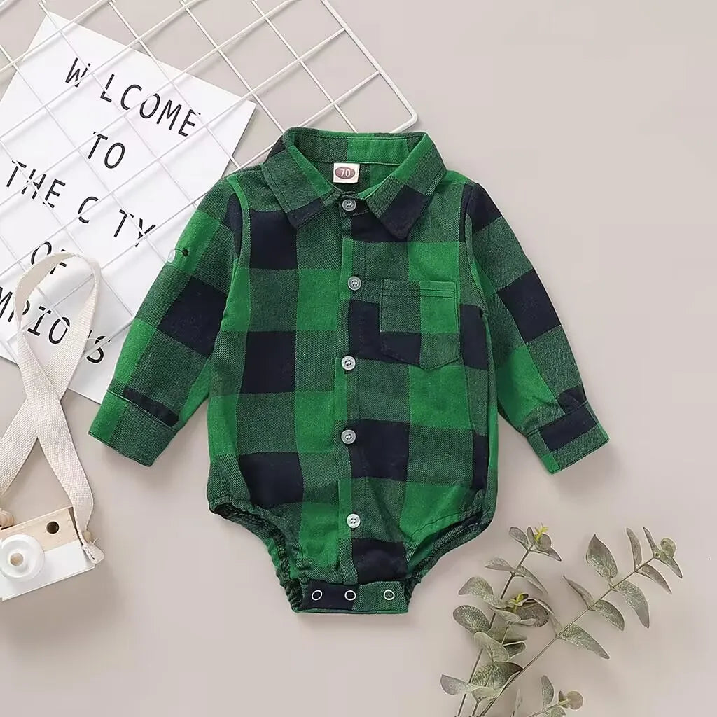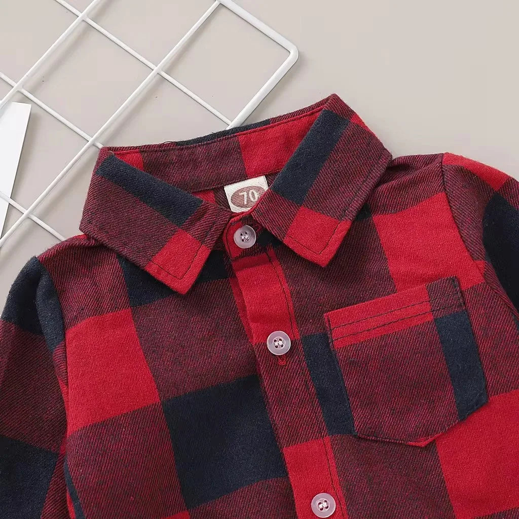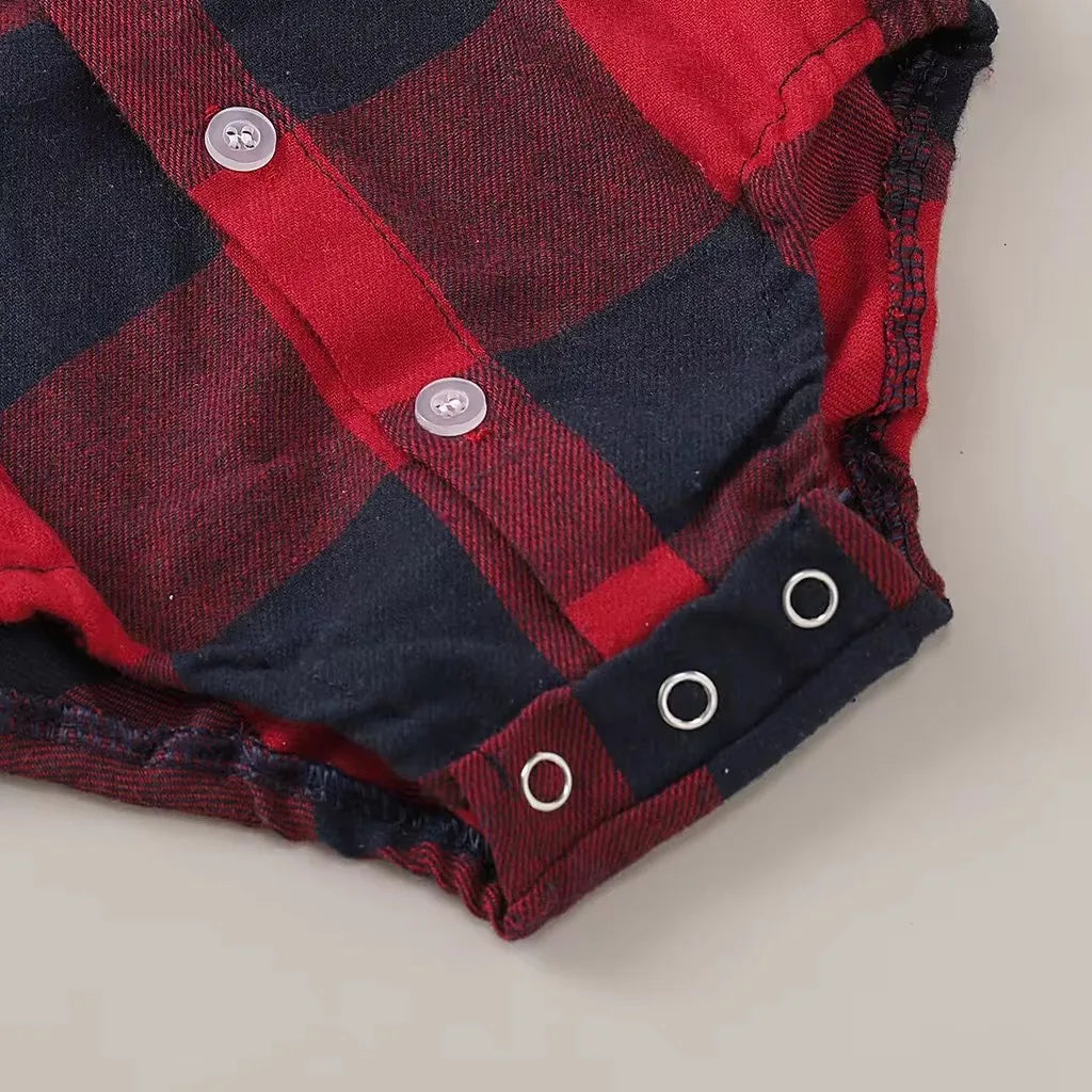 بدلة رومبير طويلة الأكمام منقوش باللون الأحمر للرضع والأولاد من عمر 0 إلى 18 شهرًا، بدلة قفز عصرية للربيع والخريف للرضع والأولاد