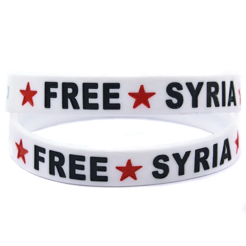 قطعة واحدة من أساور السيليكون المجانية بعلم سوريا منقوش عليها شعارات نسائية ورجالية هدايا تذكارية أساور زينة وطنية