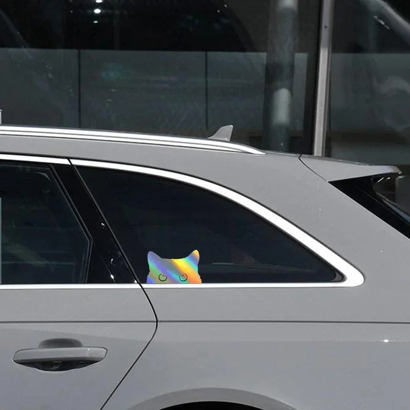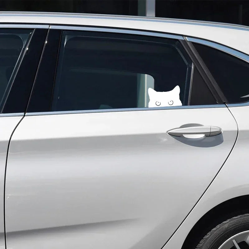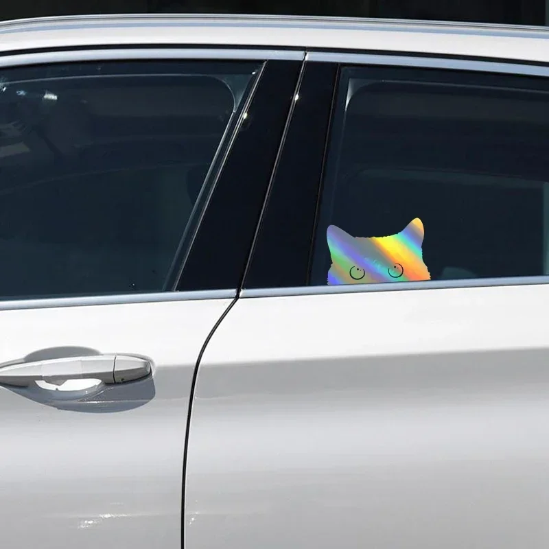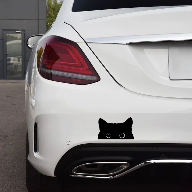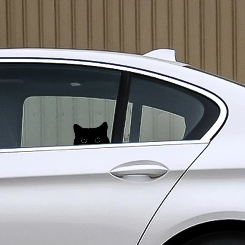 ملصق سيارة لطيف مقاس 15*9 سم، قطة فقيرة تسرق ساعة بعيون كبيرة، غطاء تصميم سيارة من الفينيل مقاوم للماء