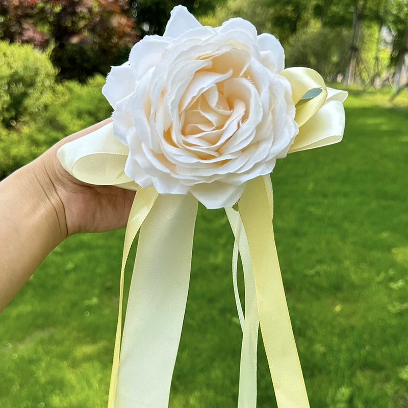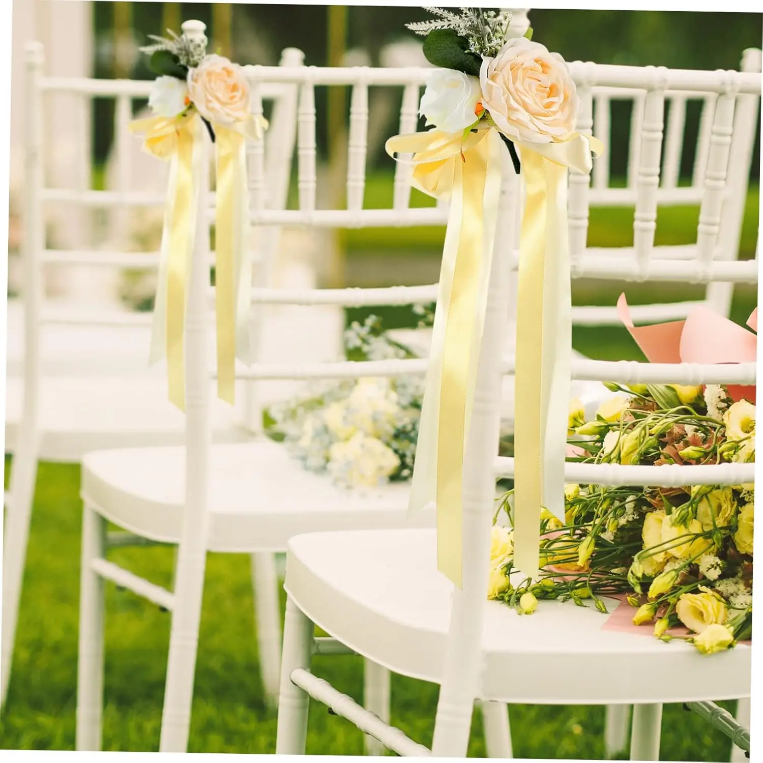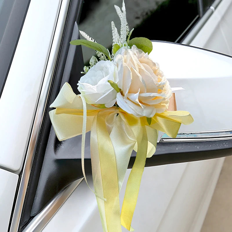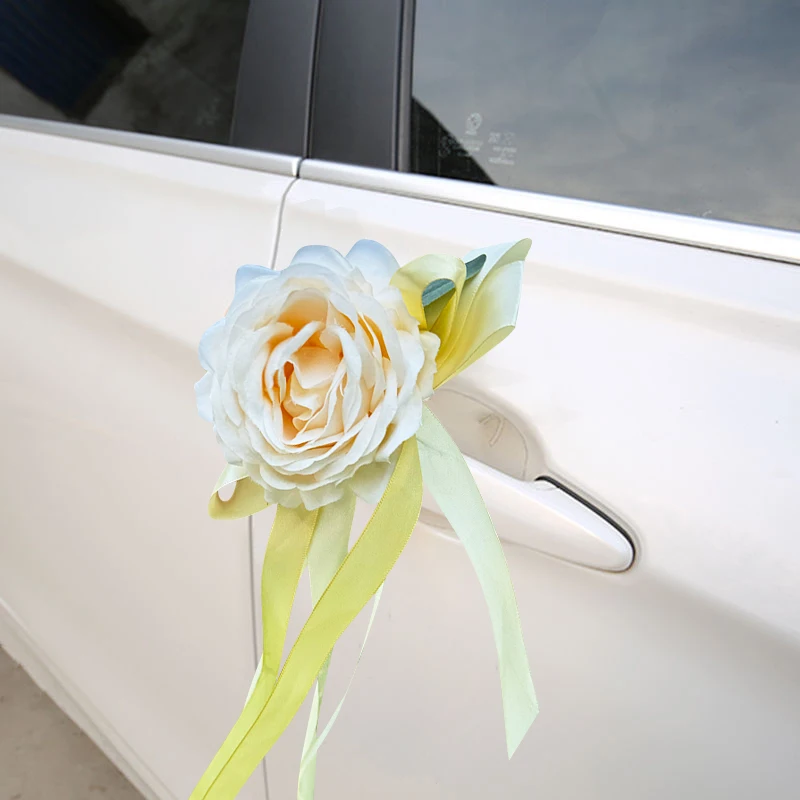 1PC Wedding Decoration Set Wedding Car Flower Silk Rose Chair Back Flowers Plate Ribbon Bows Set Door Handle Ornament Supplies
