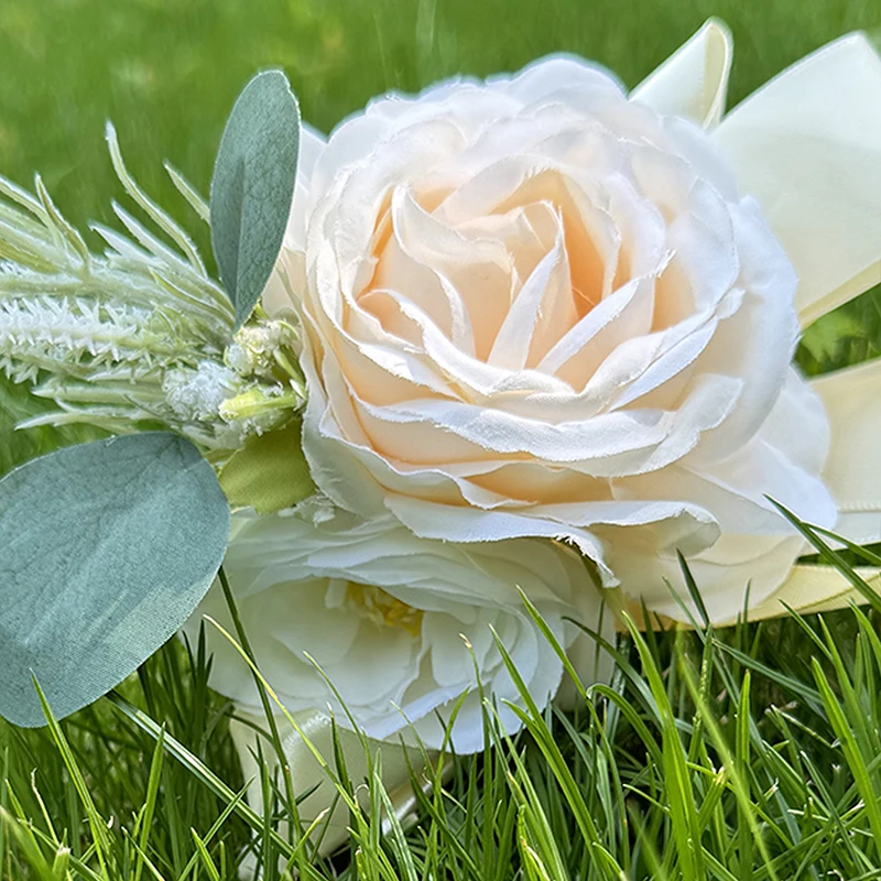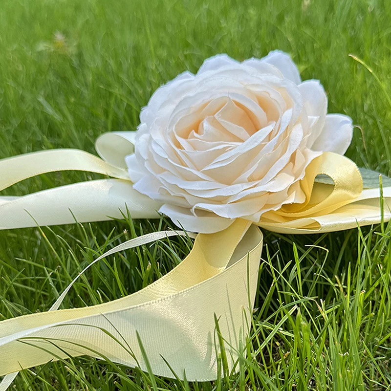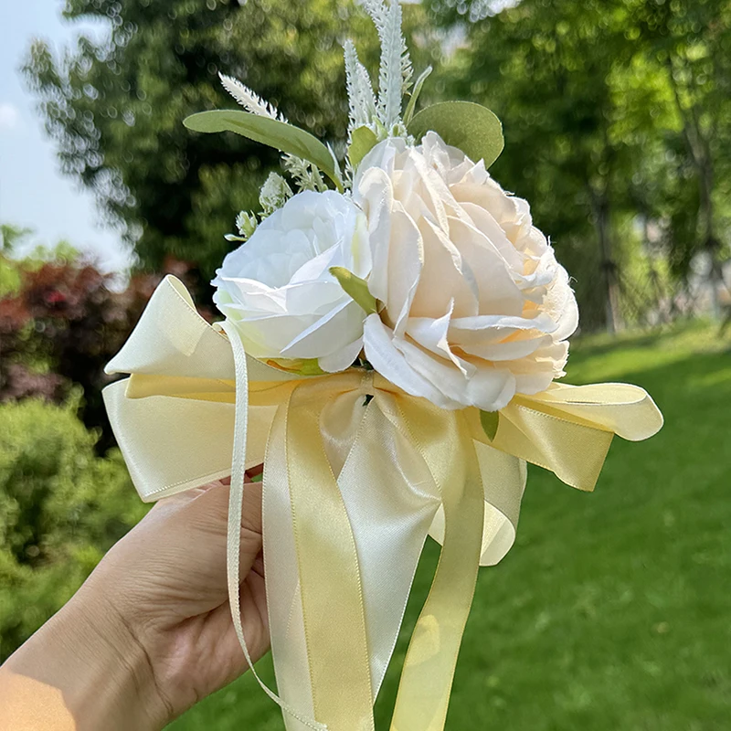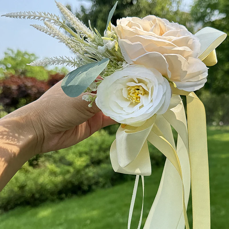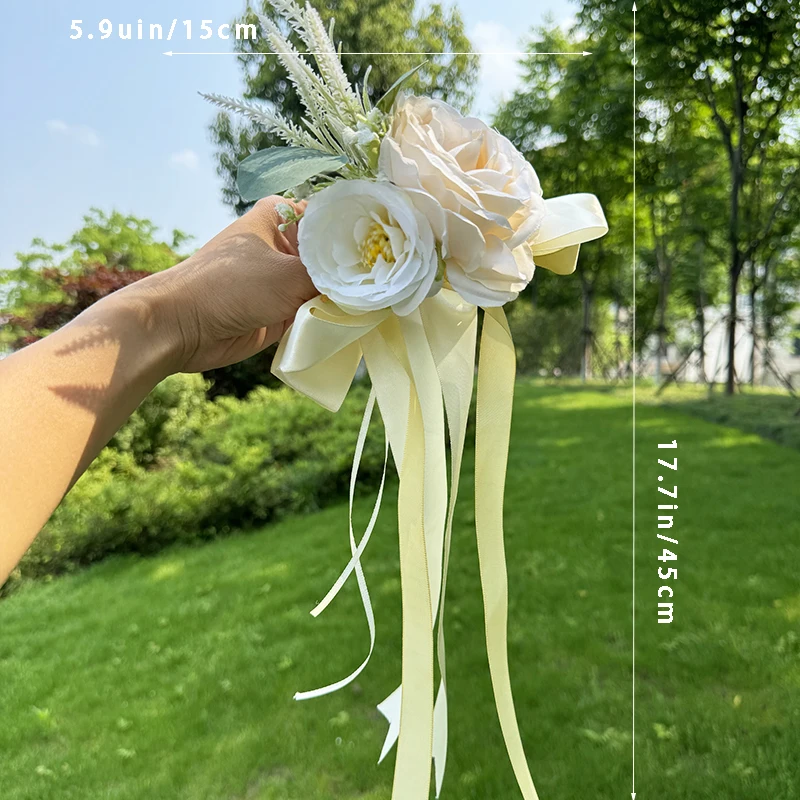 1PC Wedding Decoration Set Wedding Car Flower Silk Rose Chair Back Flowers Plate Ribbon Bows Set Door Handle Ornament Supplies