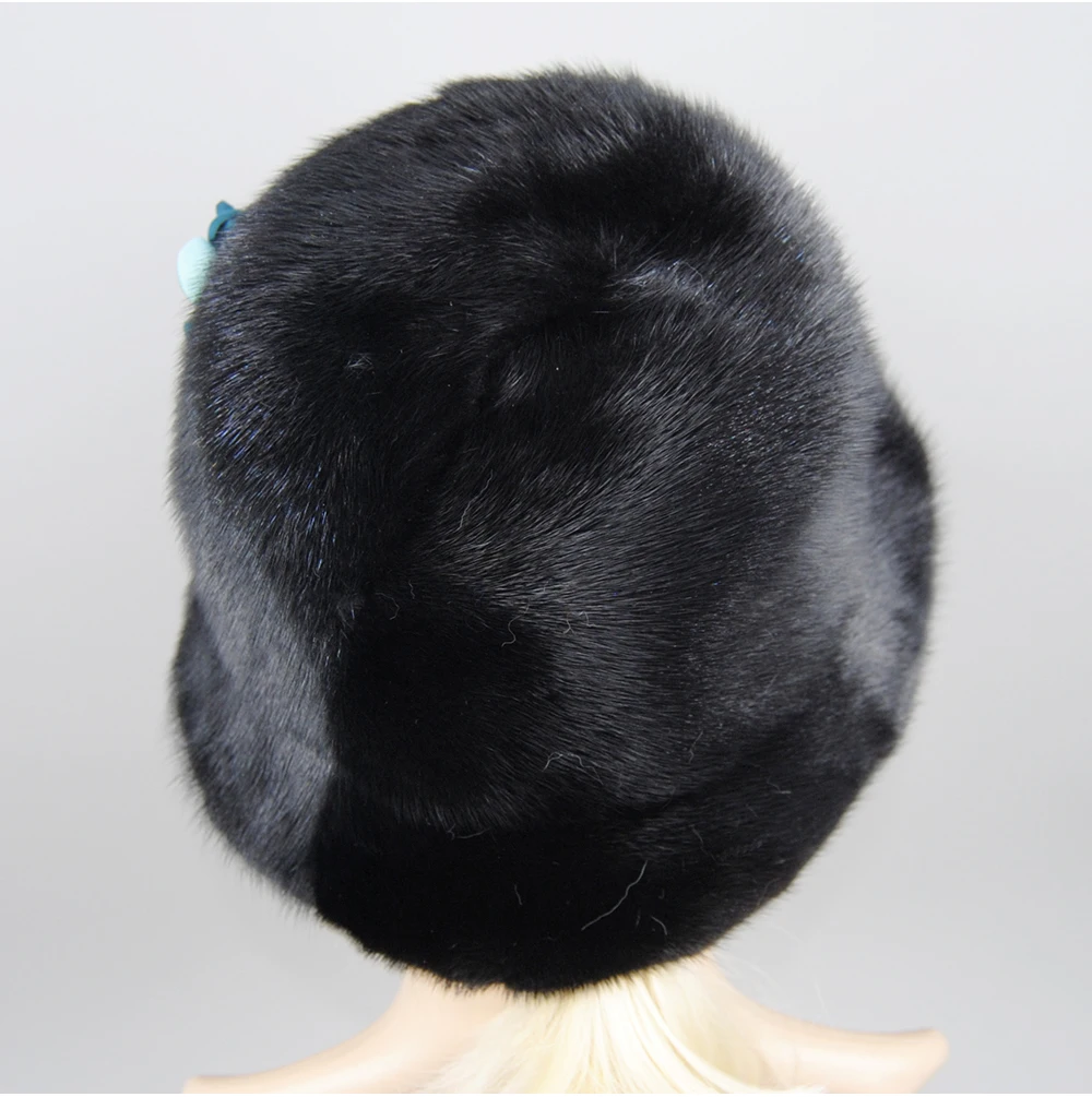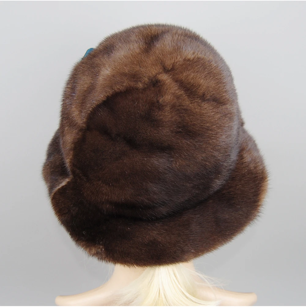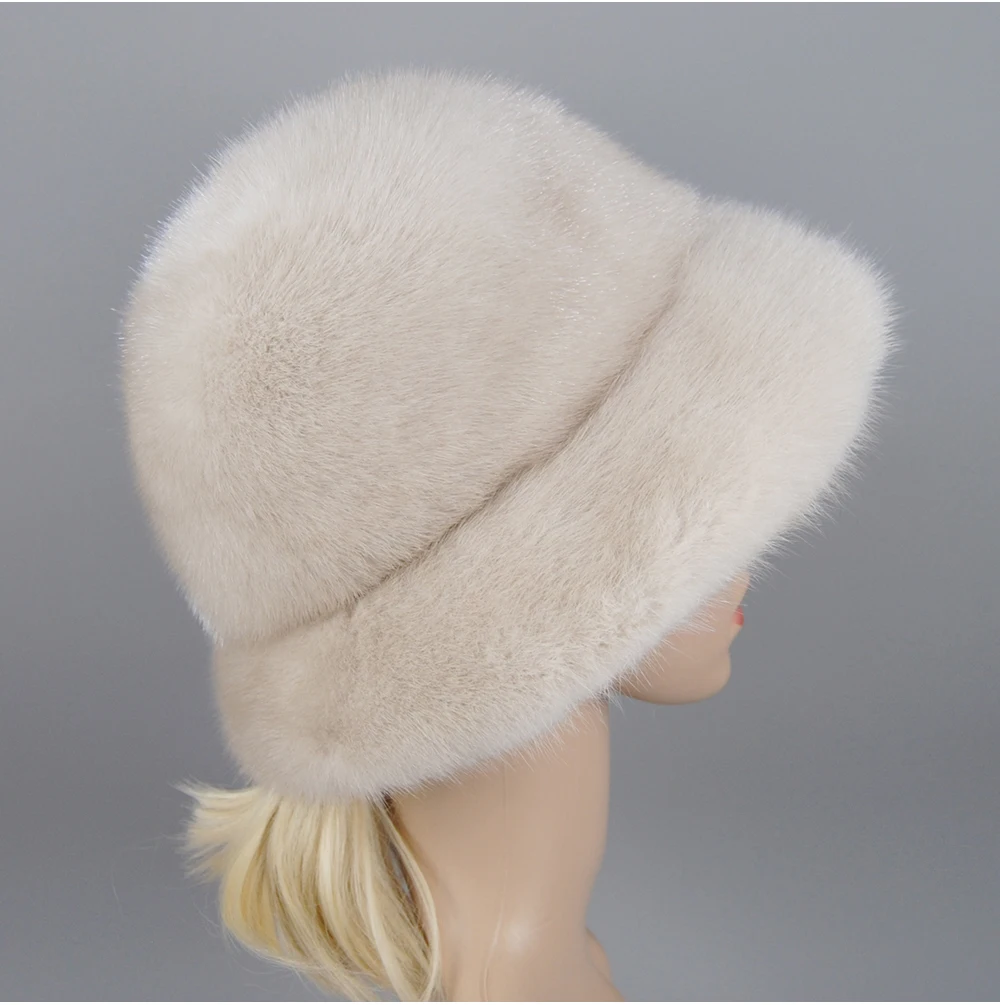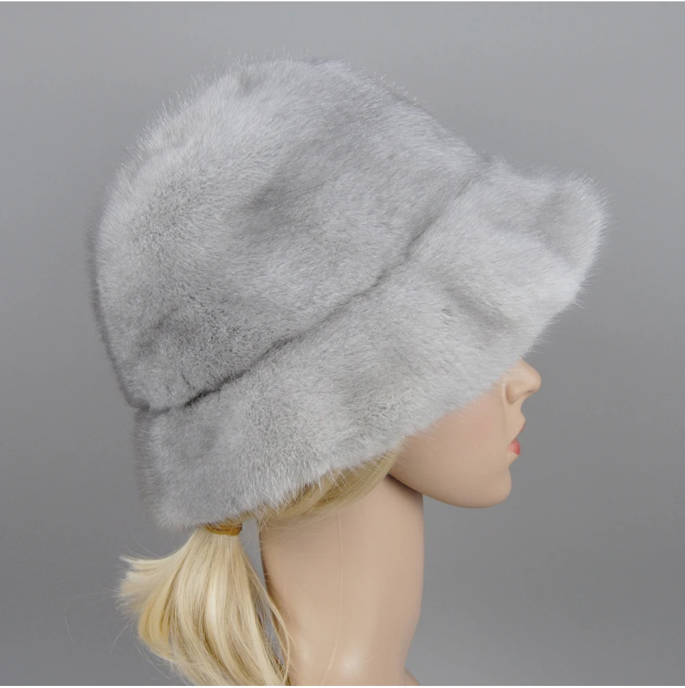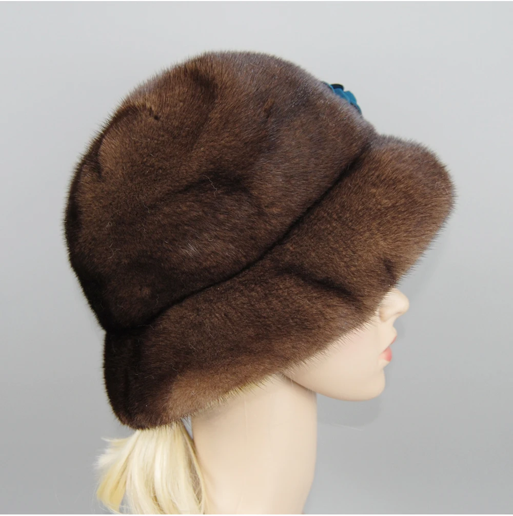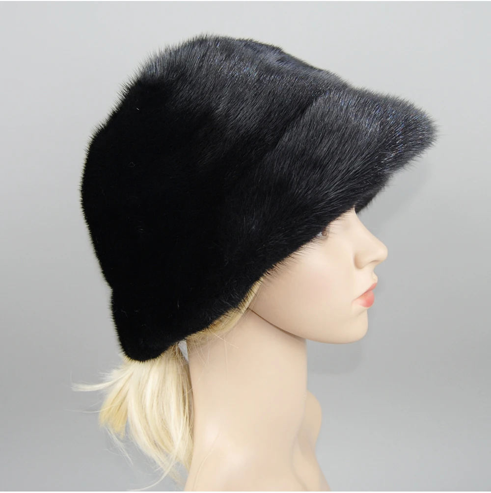 قبعات نسائية شتوية دافئة لعام 2024 من فرو المنك الصلب مع زهور وقبعات من فرو المنك الطبيعي قبعات دلو من الفرو الحقيقي محبوكة ناعمة للفتيات الروسيات