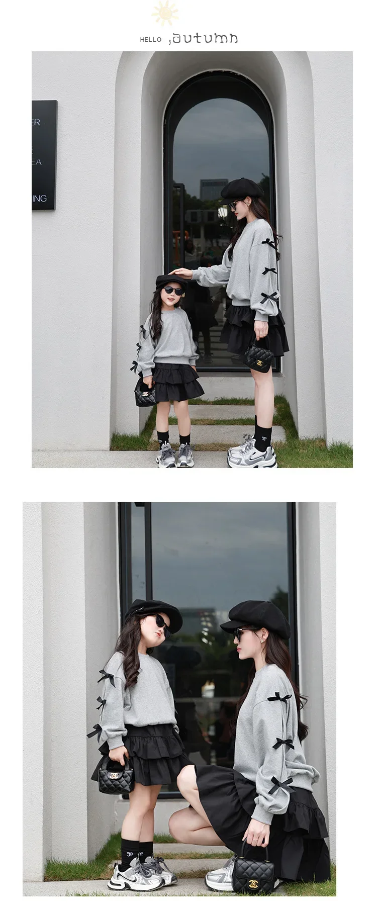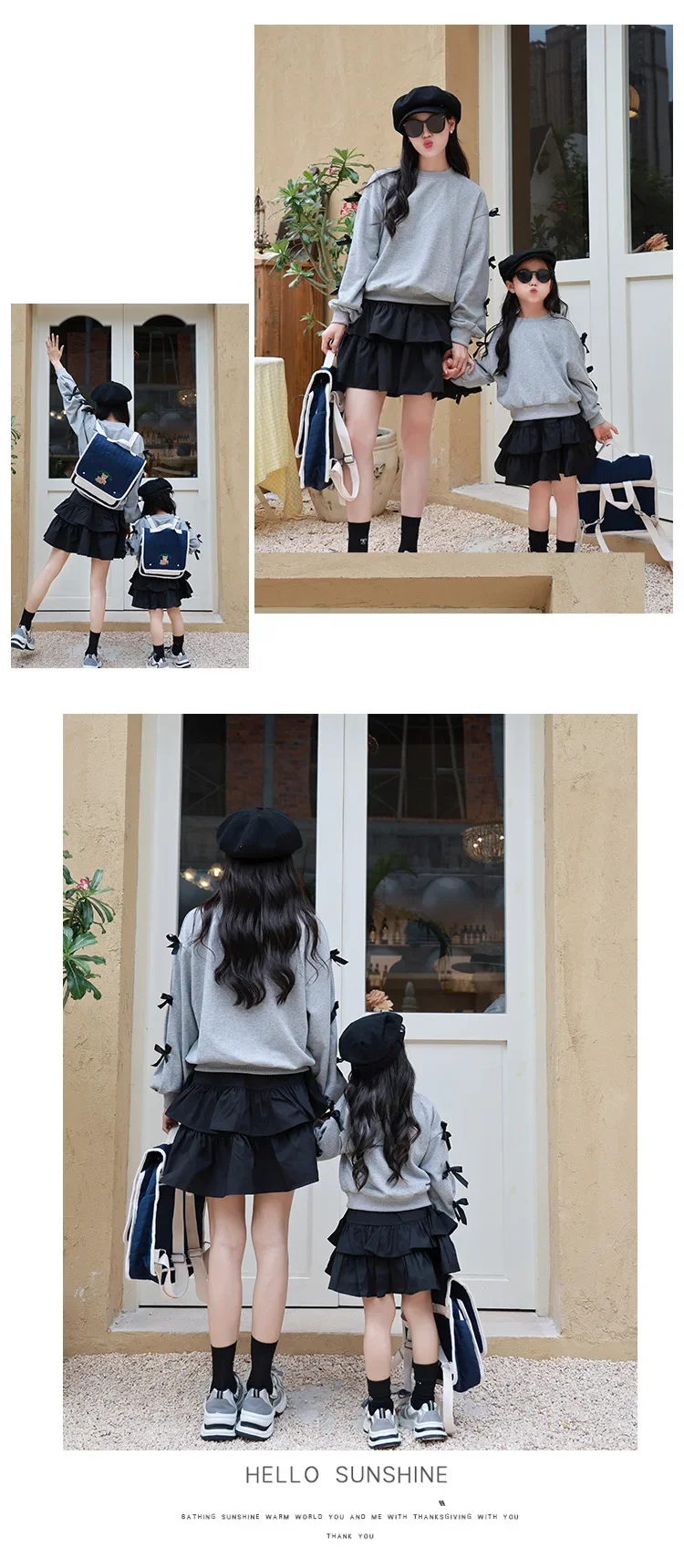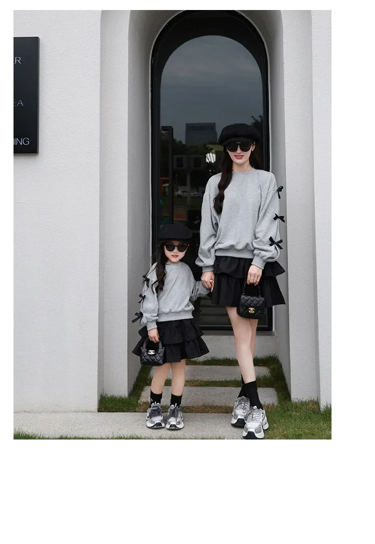 2025 Mommy and Me Matching Clothes Family Sweatshirt Mother Daughter Equal Clothes Children Bow Tops Spring Girl Baby Clothing