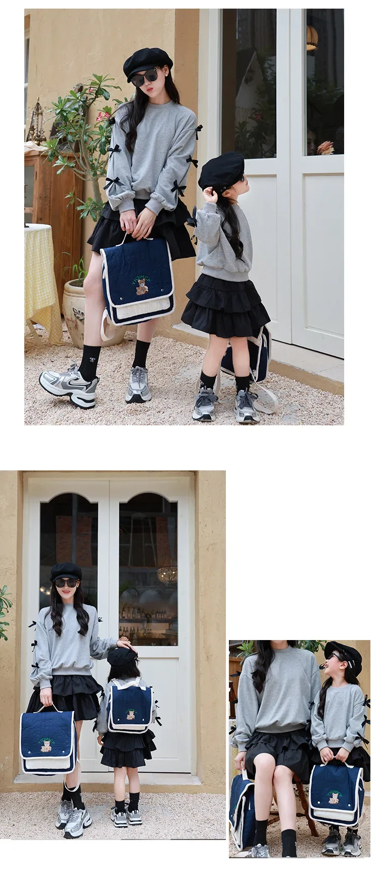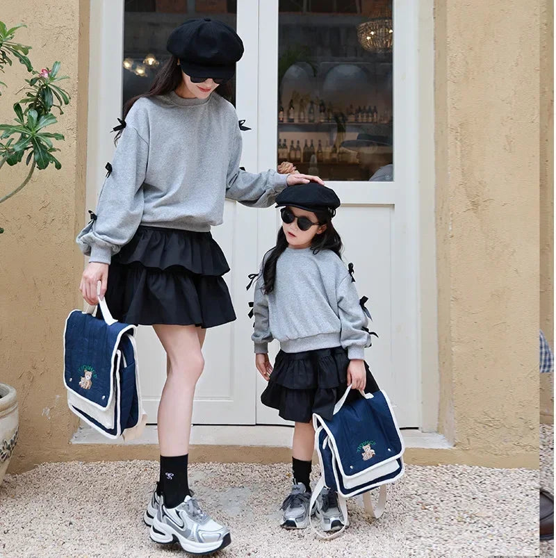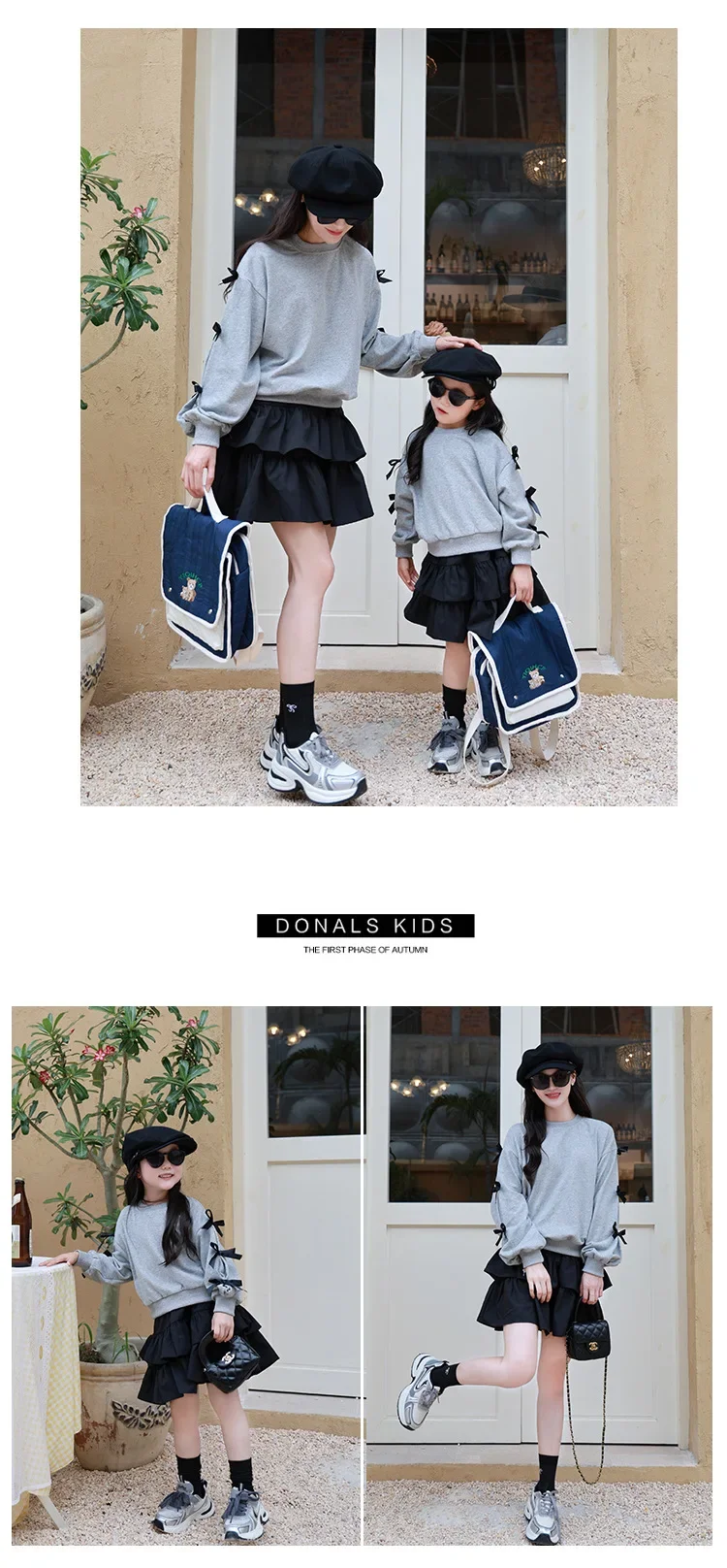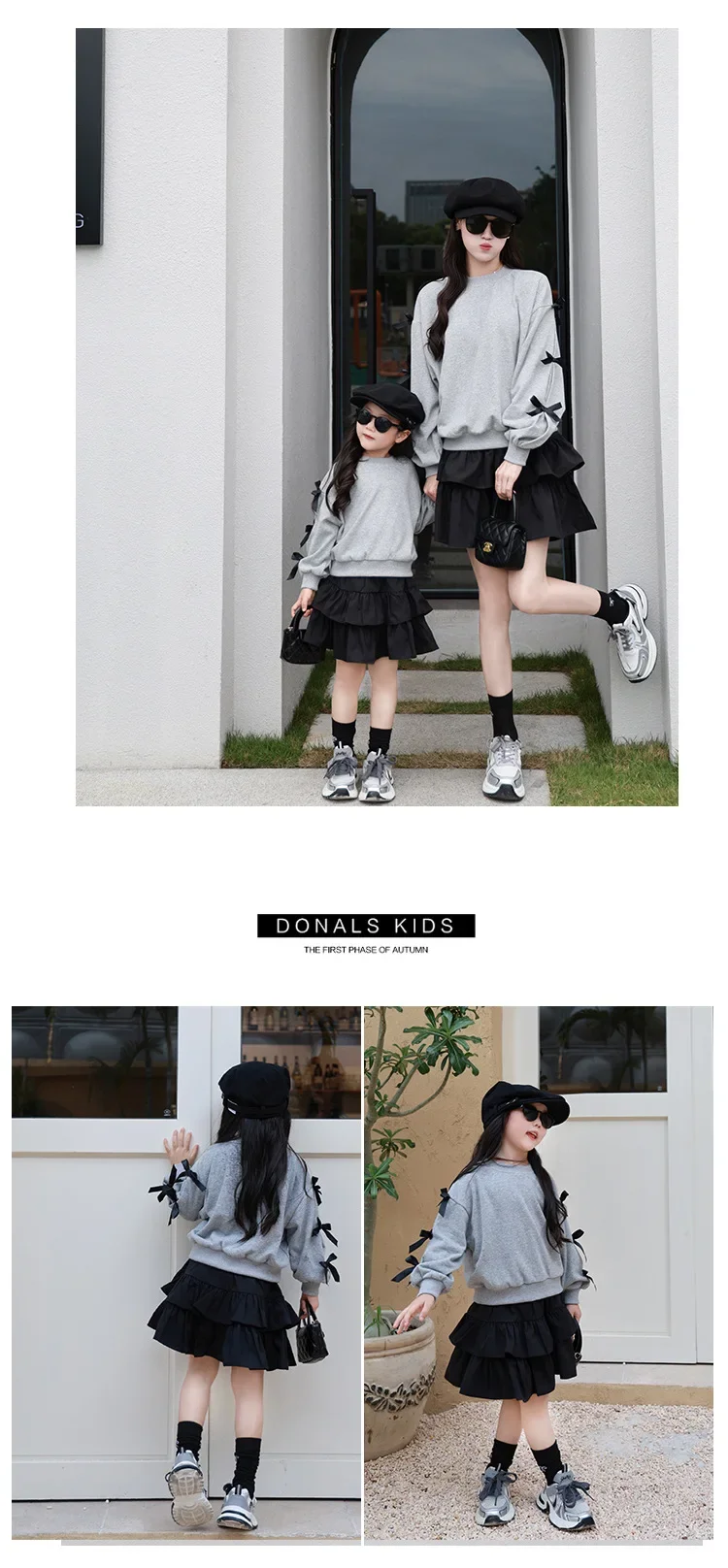 2025 Mommy and Me Matching Clothes Family Sweatshirt Mother Daughter Equal Clothes Children Bow Tops Spring Girl Baby Clothing