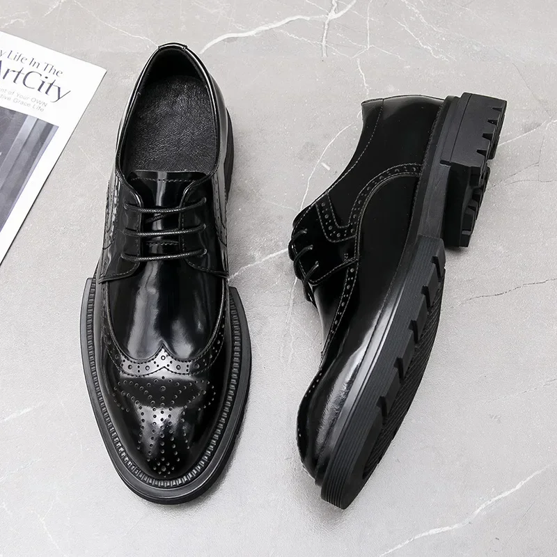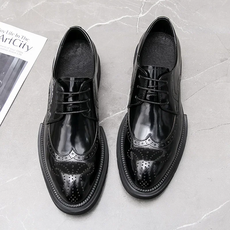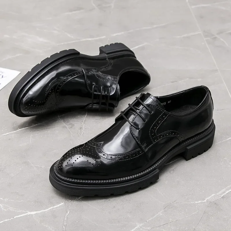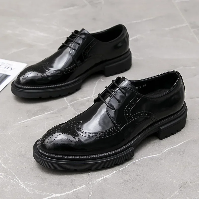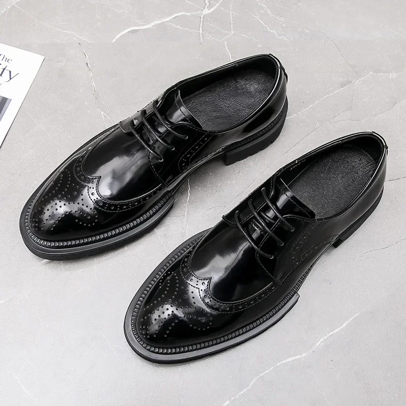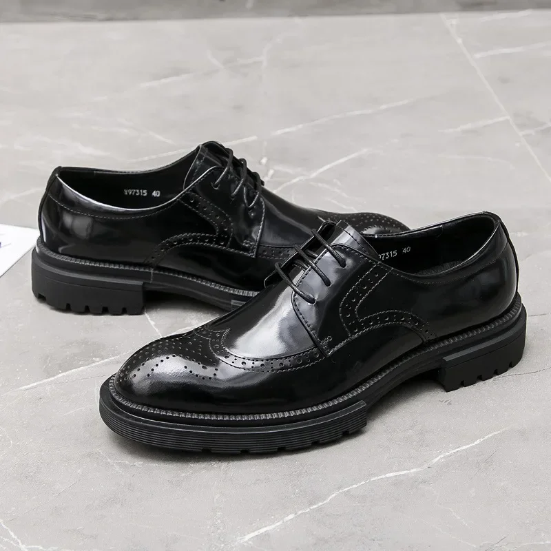2025 أحذية رجالية جديدة للأعمال التجارية من الجلد اللامع الأوروبي أحذية منصة ذات أجواء رائعة أحذية جلدية للرجال هدية