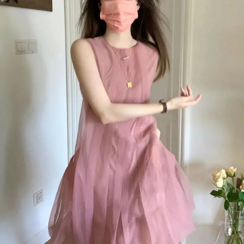 ملابس نسائية ربيع وخريف 2025، ملابس نسائية بدون أكمام، ملابس نسائية متناسقة، فساتين على الطراز الكوري، ملابس نسائية من الشيفون الصلب
