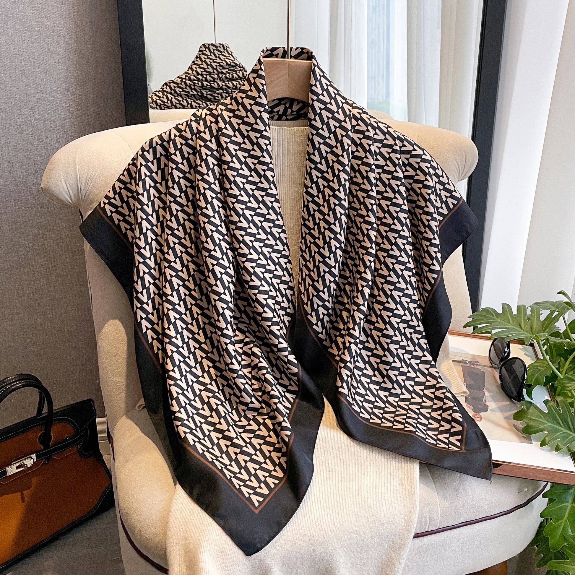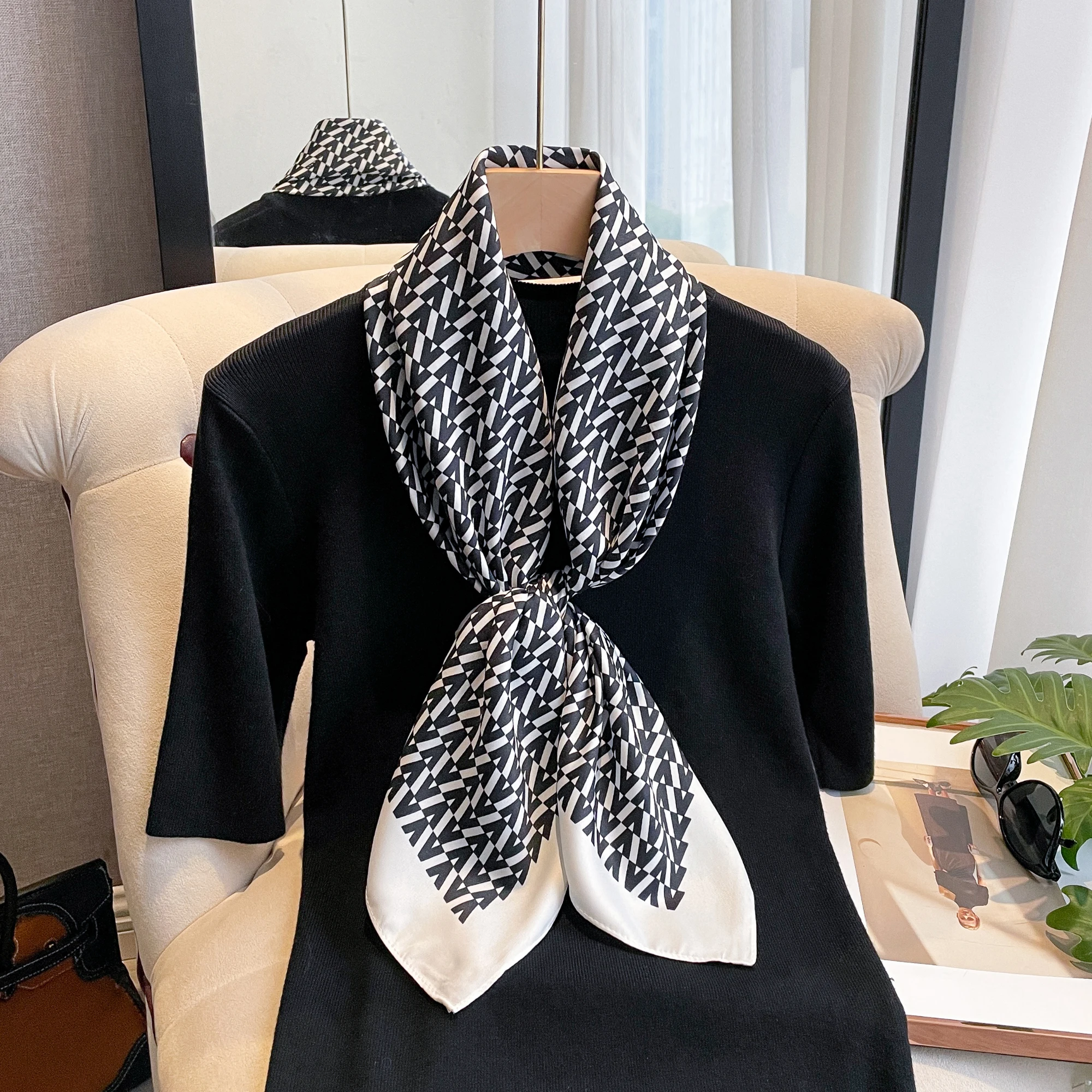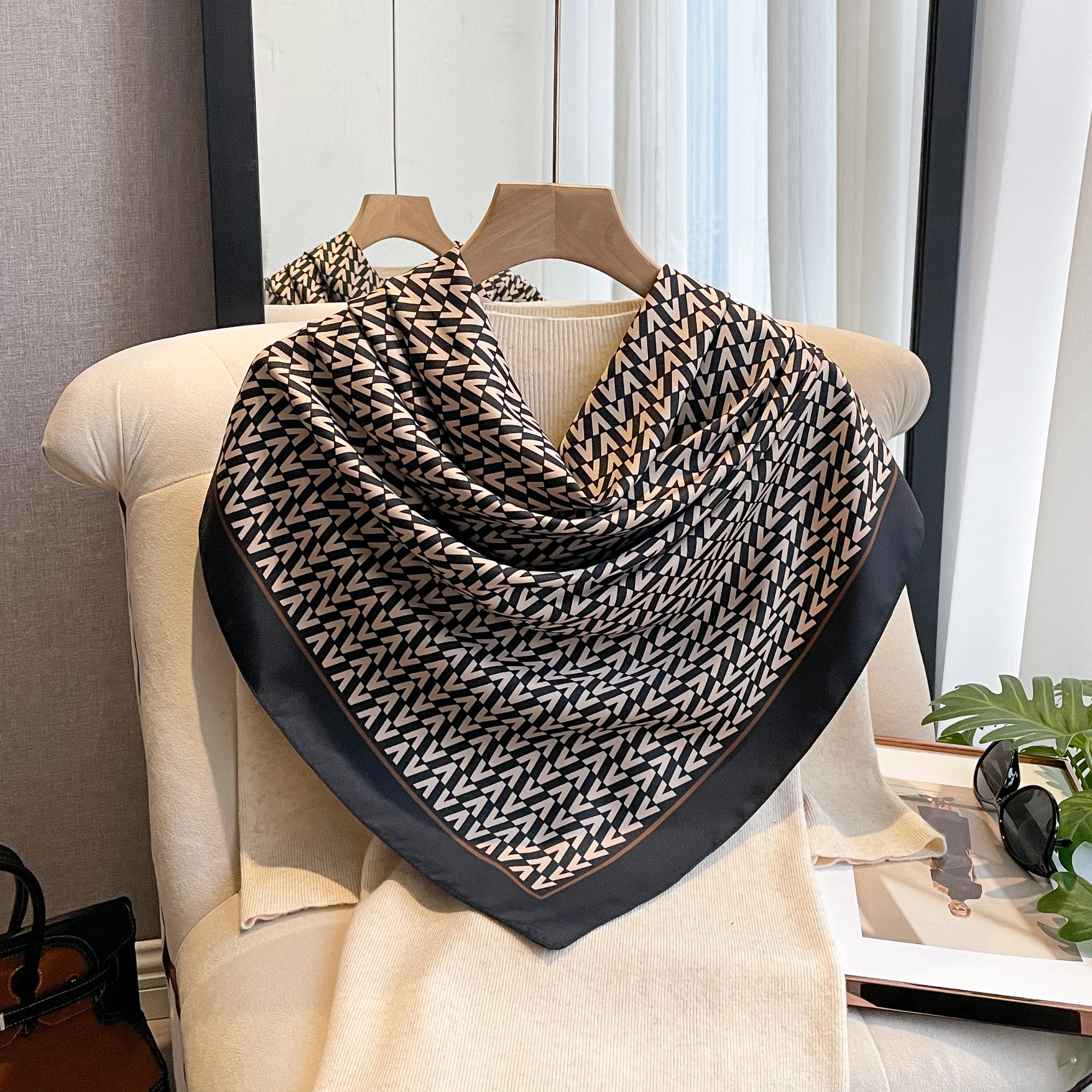 وشاح مربع من الحرير المائل لعام 2025 مطبوع عليه وشاح حجاب دافئ للشاطئ بطول 90 سم، وشاح شال، حقيبة رباط شعر للنساء، وشاح معصم