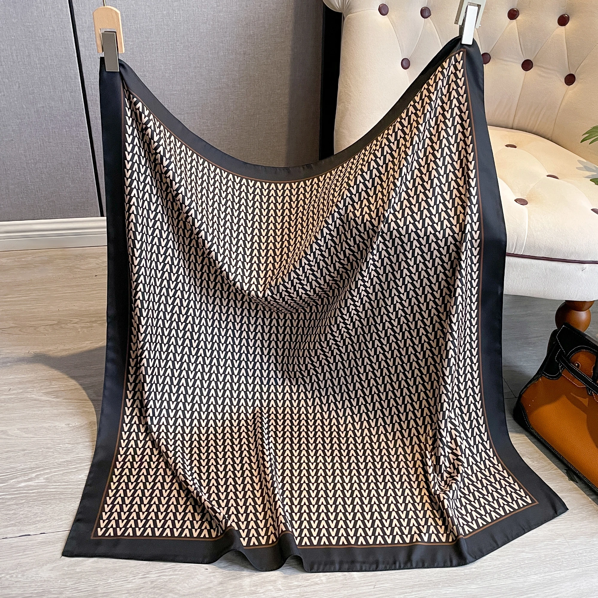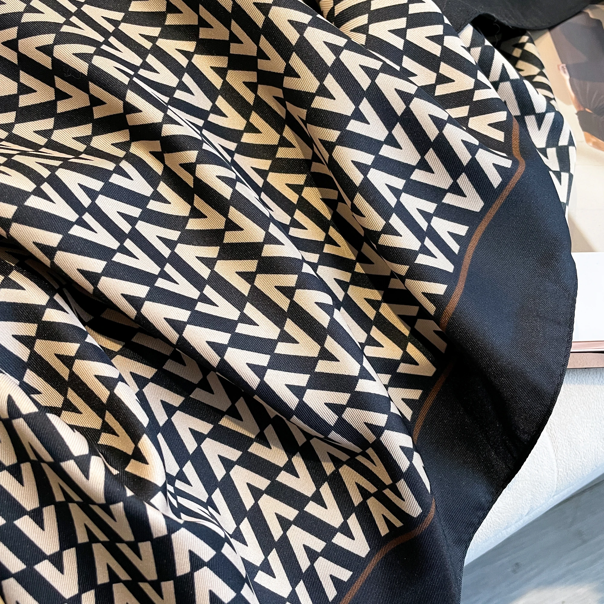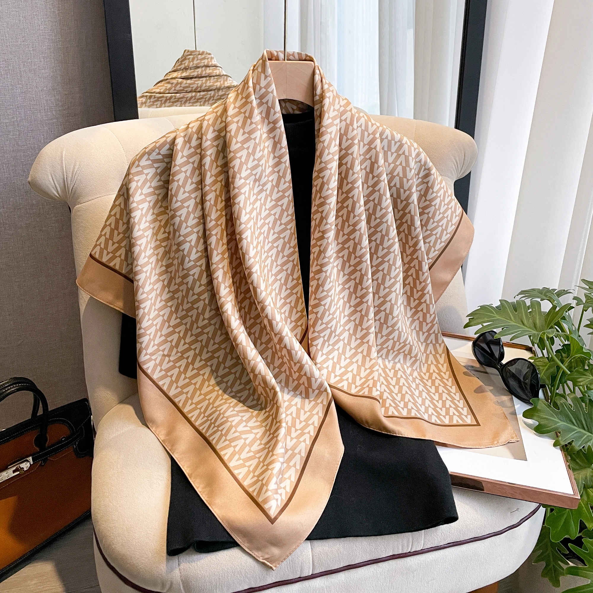 وشاح مربع من الحرير المائل لعام 2025 مطبوع عليه وشاح حجاب دافئ للشاطئ بطول 90 سم، وشاح شال، حقيبة رباط شعر للنساء، وشاح معصم