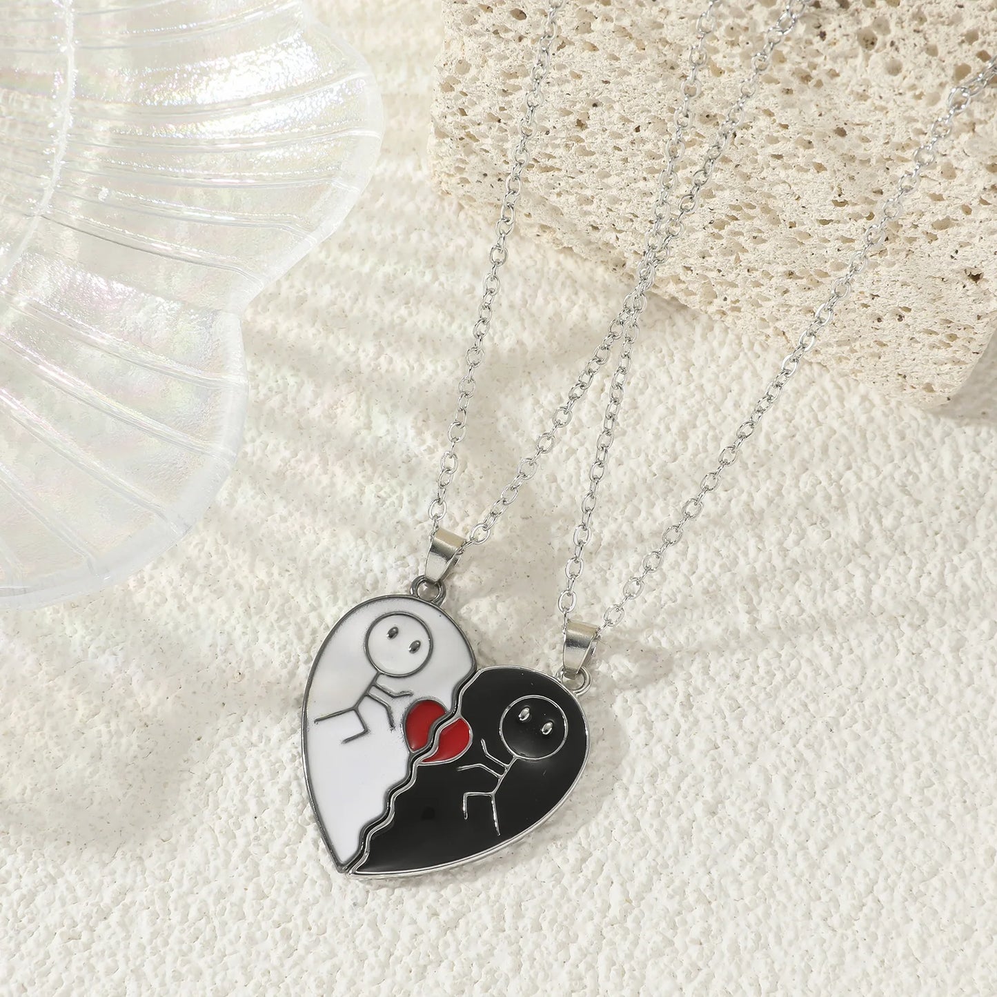 قلادتان مطليتان بالفضة على شكل مفتاح أوروبي للنساء والعشاق والزوجين قلادة على شكل قلب مكسور هدية عيد الحب رقم 3