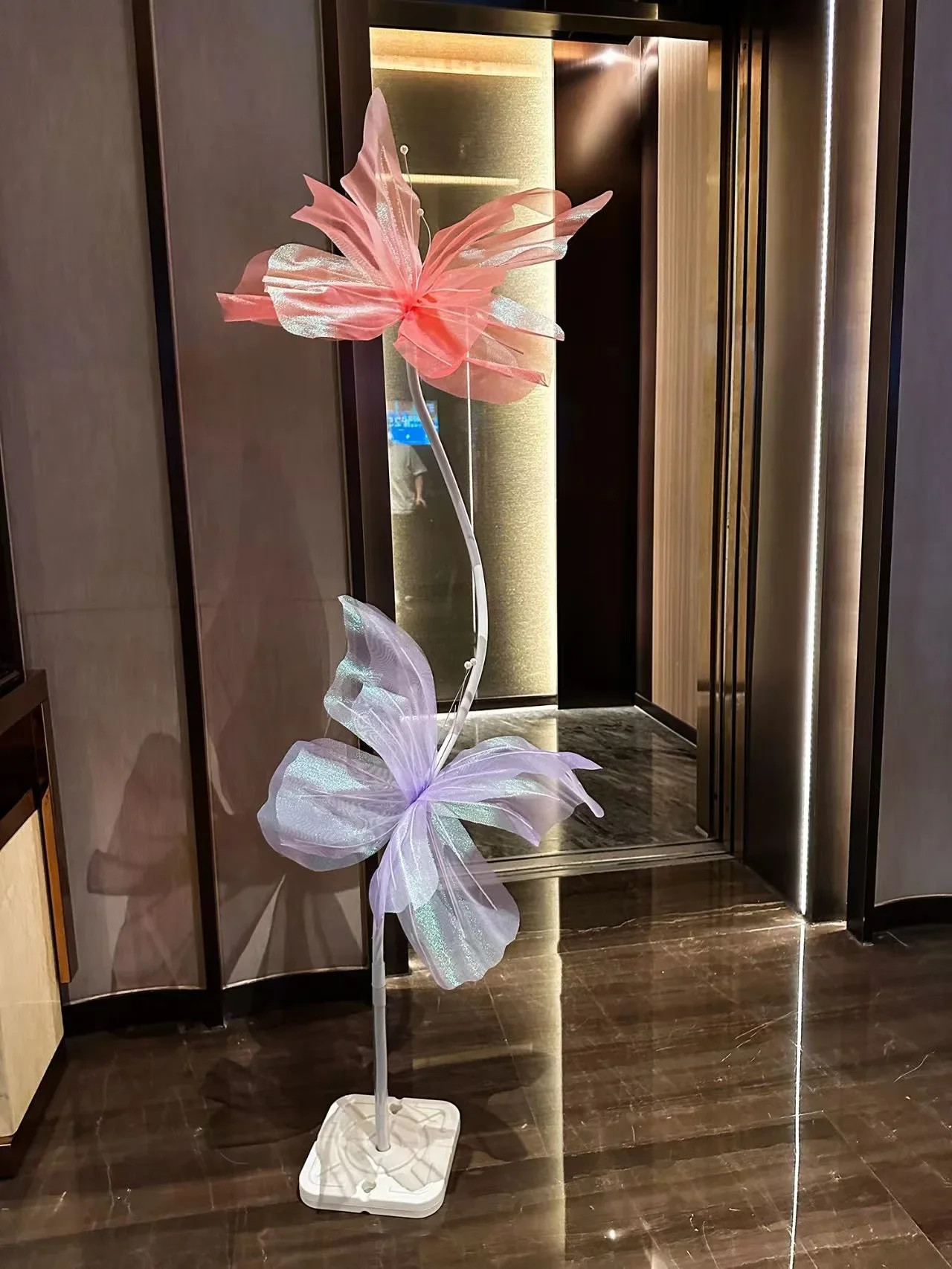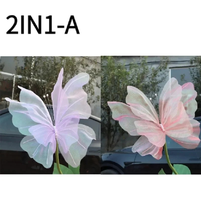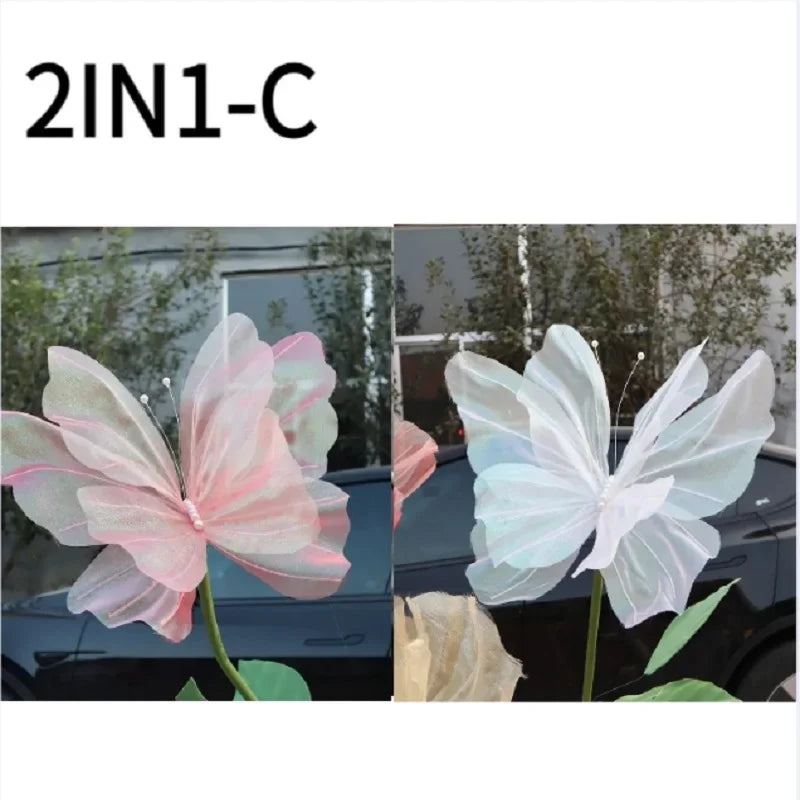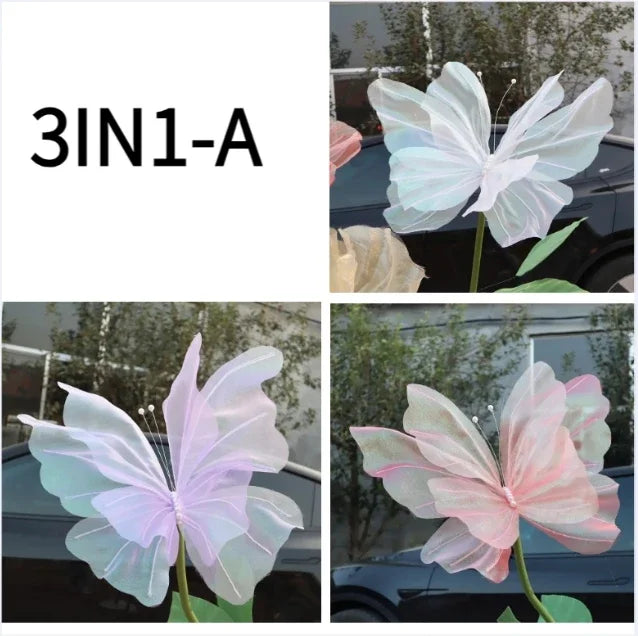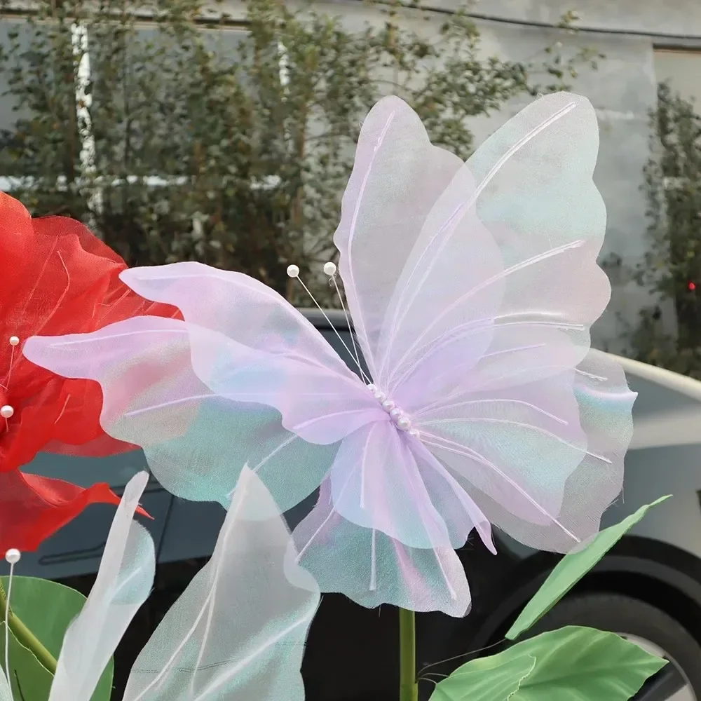 فراشة محاكاة كبيرة بحجم 50 سم، زينة حفلات الزفاف الخارجية، فراشة وهمية معلقة كبيرة من الشاش، مناسبة لعيد الحب