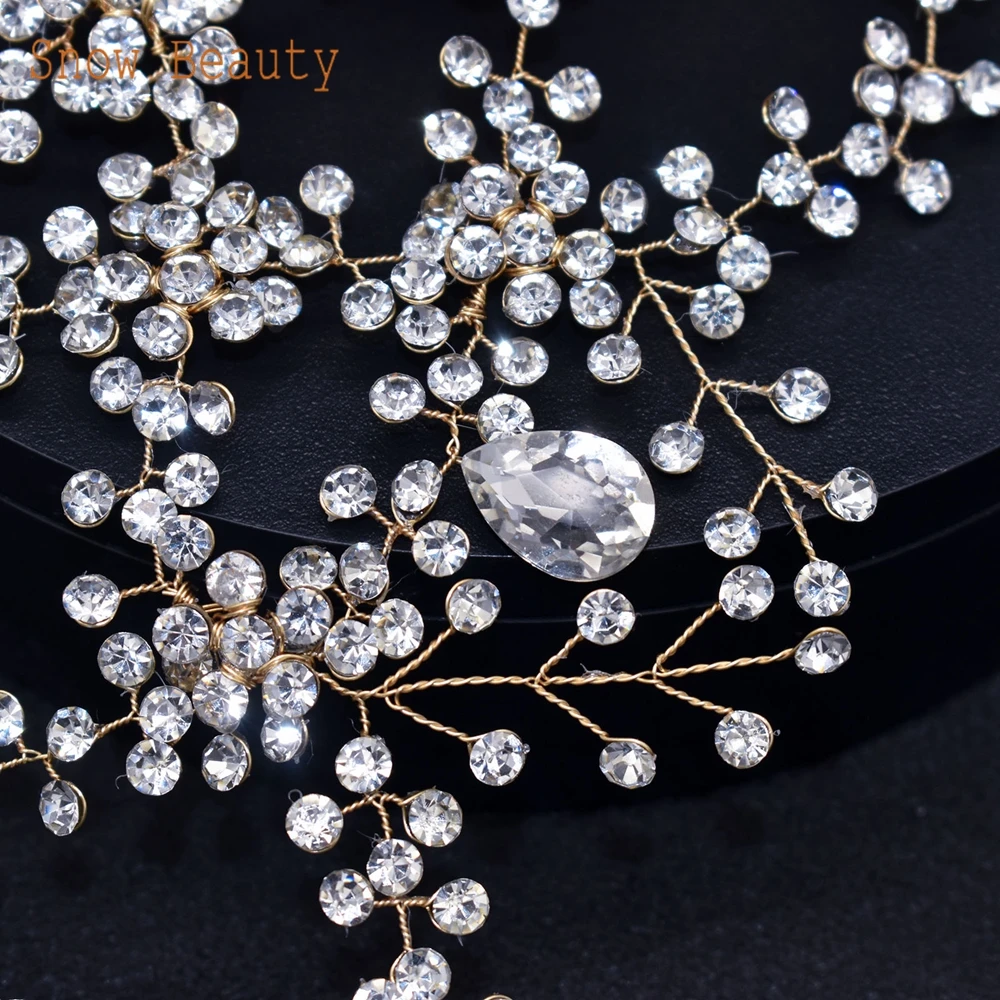 A446 Handmade Water Drop Diamond Tiara Wedding Headband for Bride Bridesmaid Bridal Headpieces Hair Accessories for Prom Party