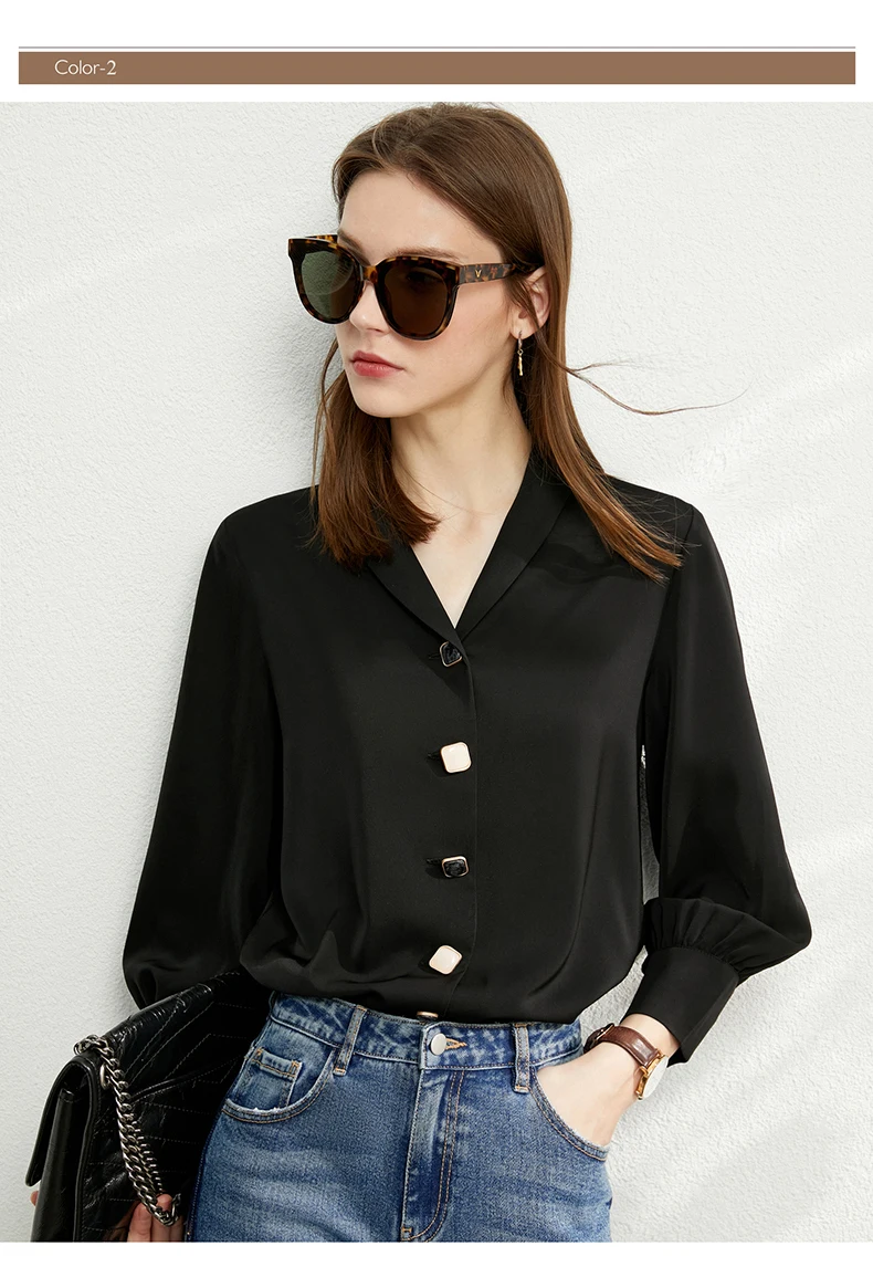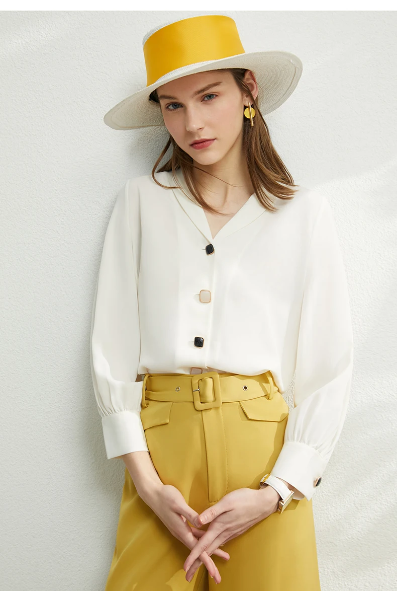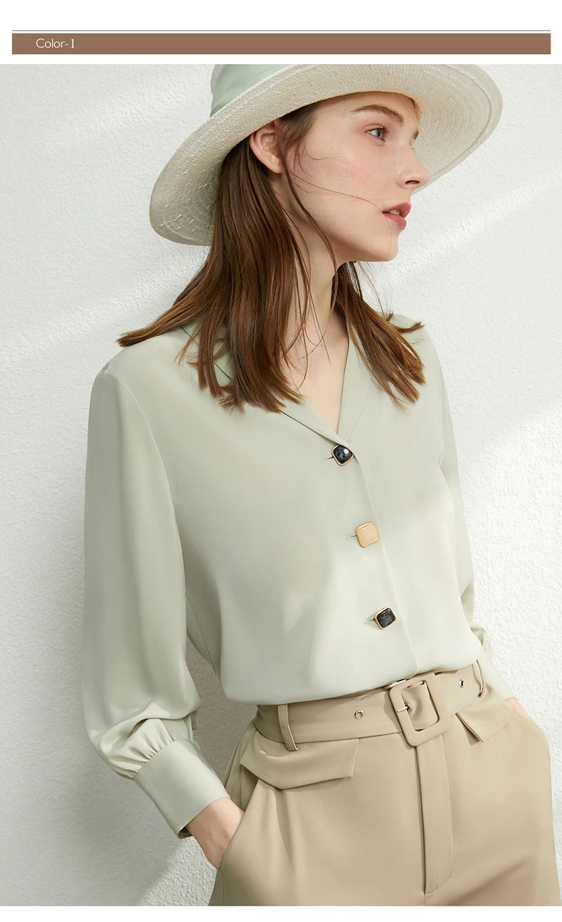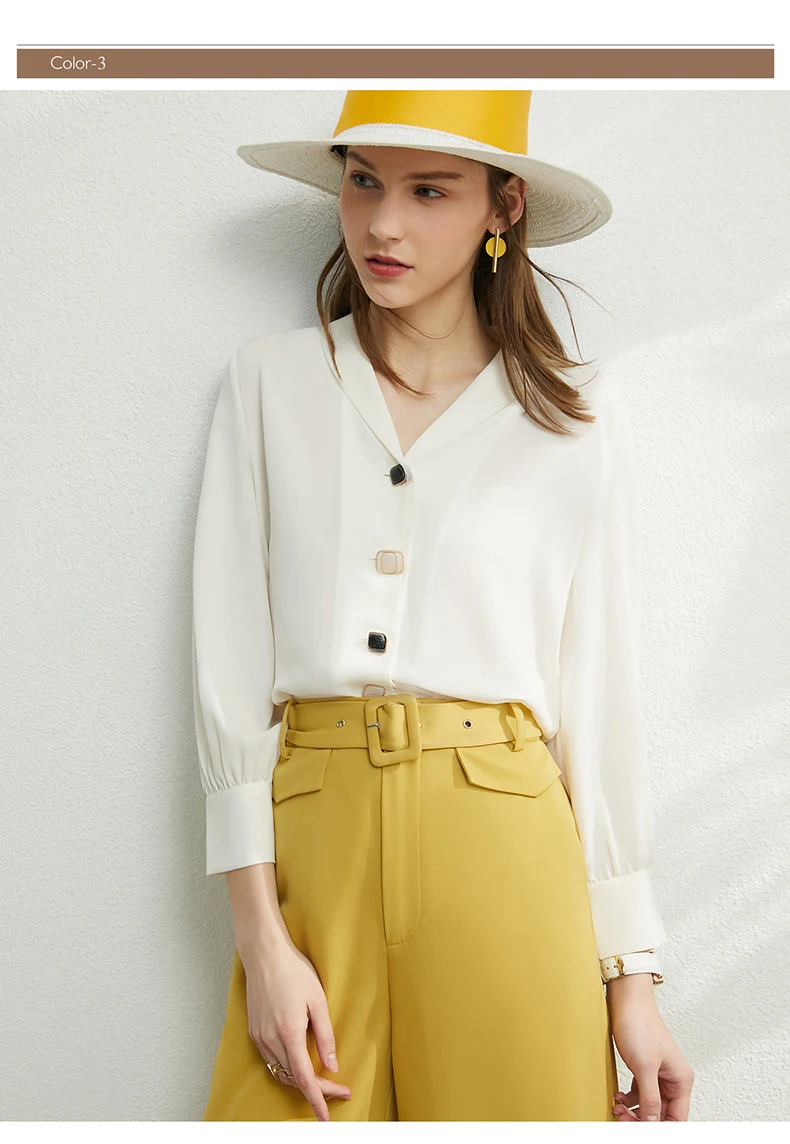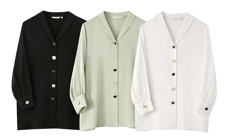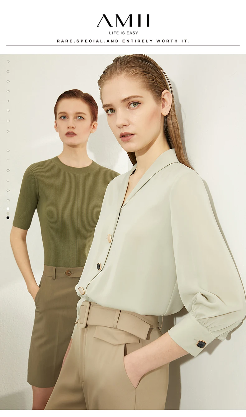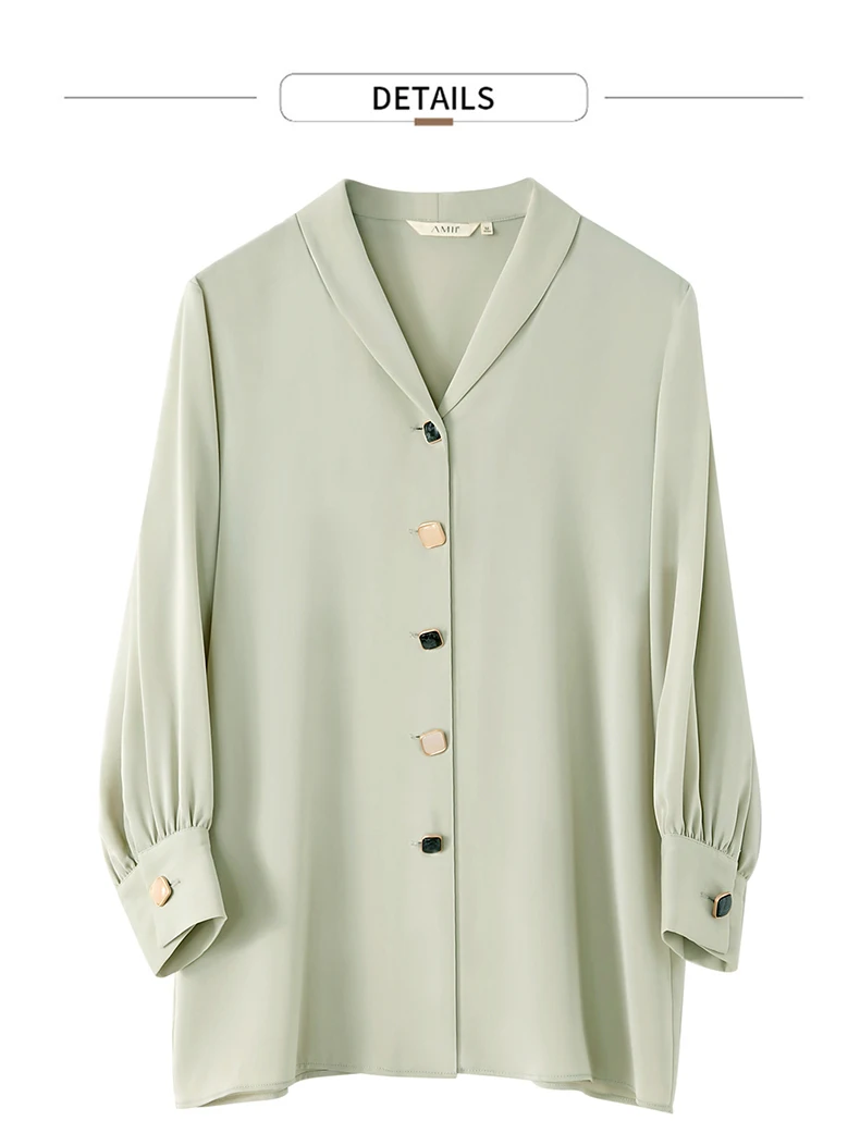 بلوزة Amii Minimalism للنساء الربيعية ذات الرقبة على شكل حرف V بلوزة شيفون سادة قمصان كاجوال للسيدات في المكتب بلوزات أنيقة للنساء 12030219 ملابس