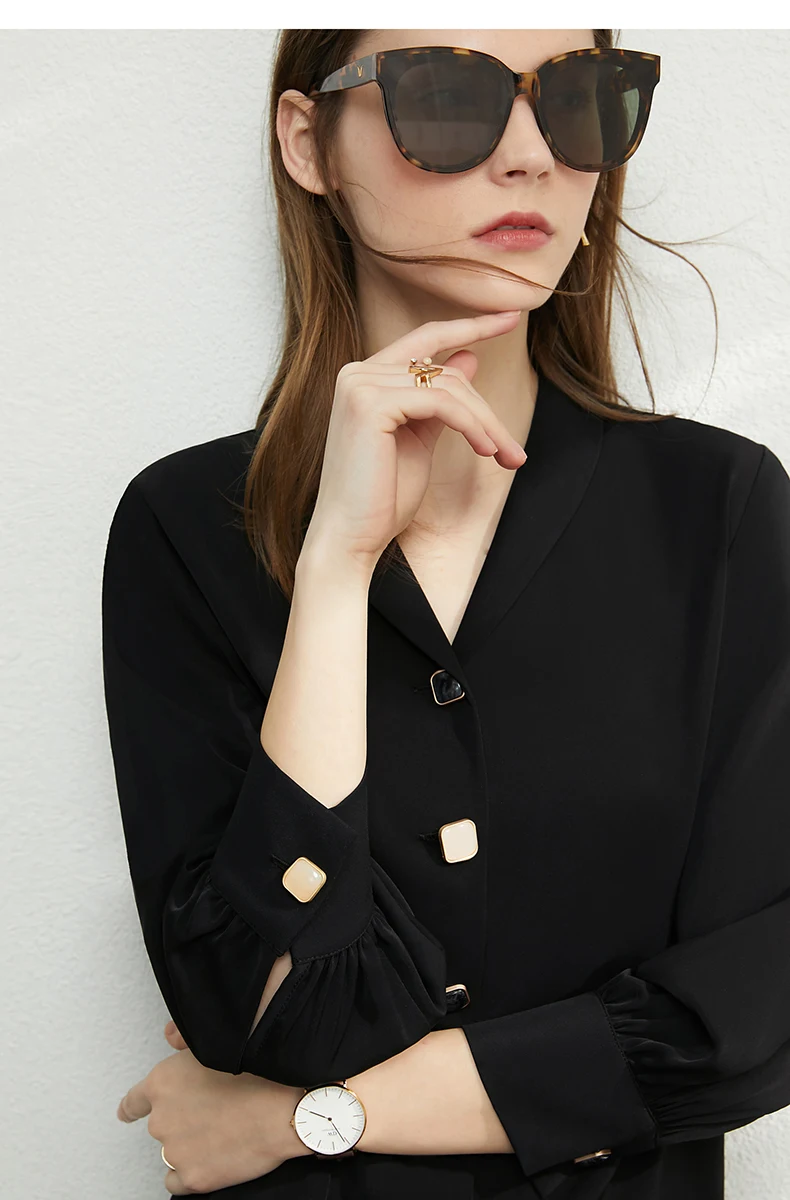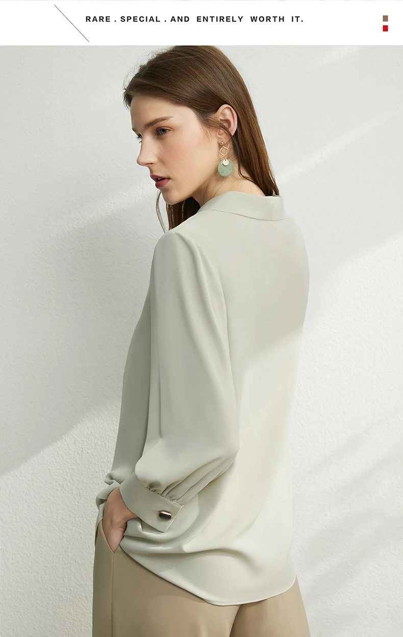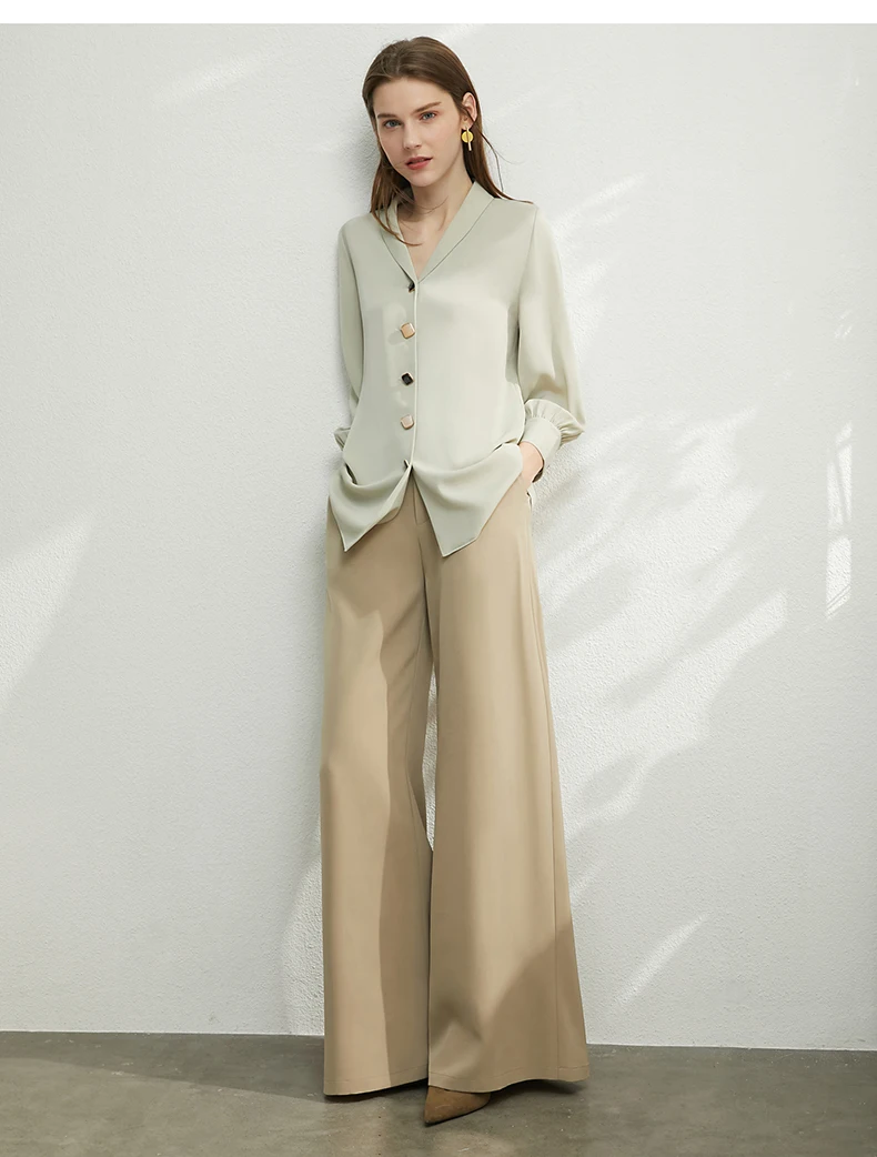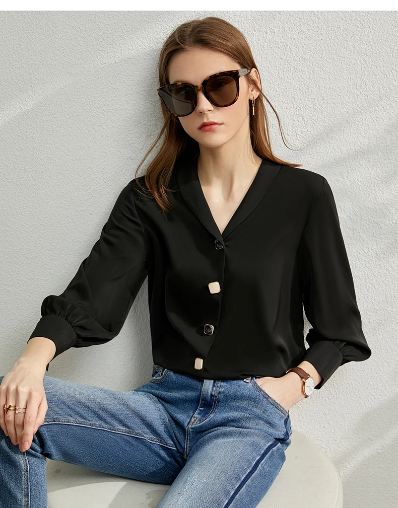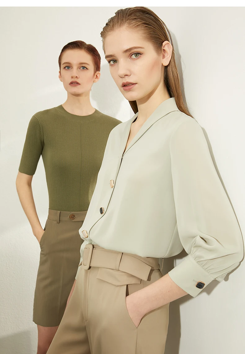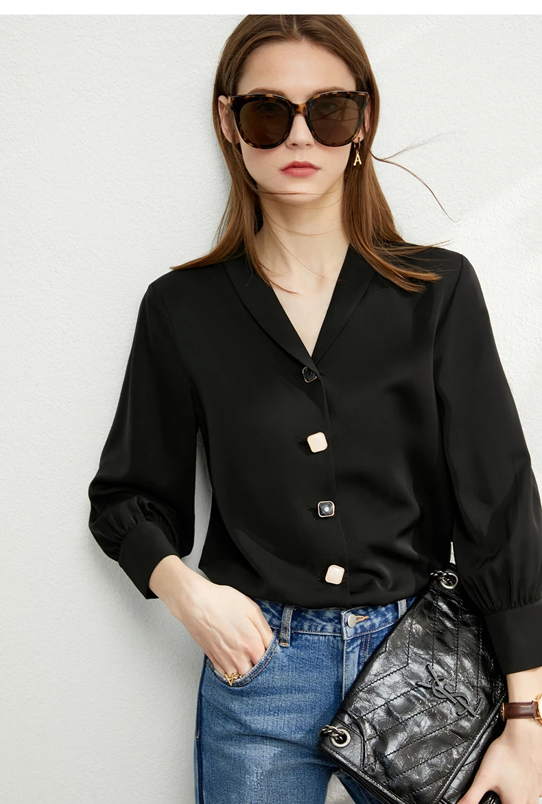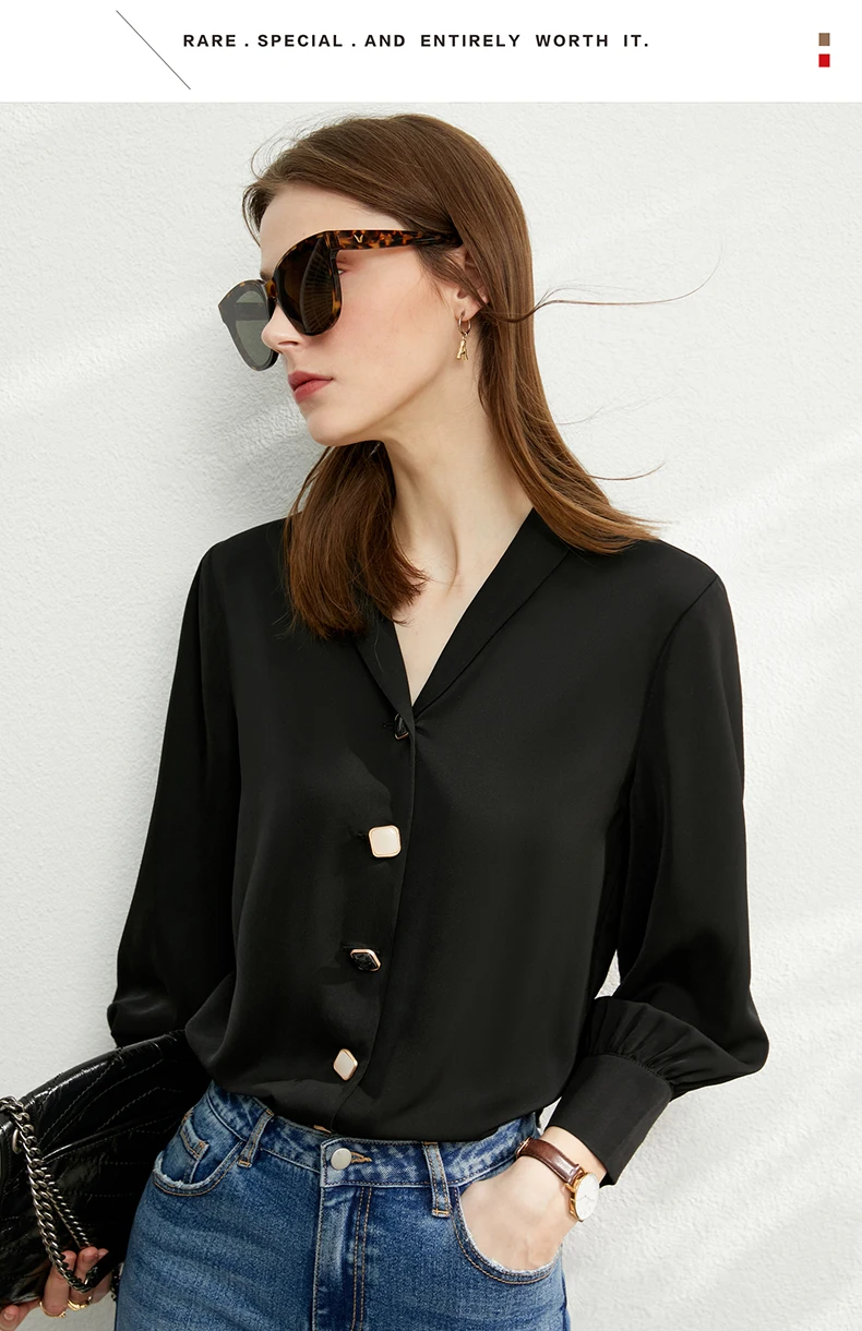 بلوزة Amii Minimalism للنساء الربيعية ذات الرقبة على شكل حرف V بلوزة شيفون سادة قمصان كاجوال للسيدات في المكتب بلوزات أنيقة للنساء 12030219 ملابس