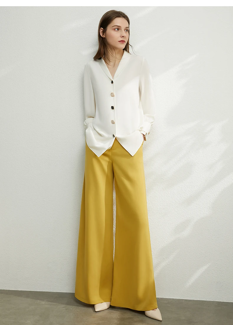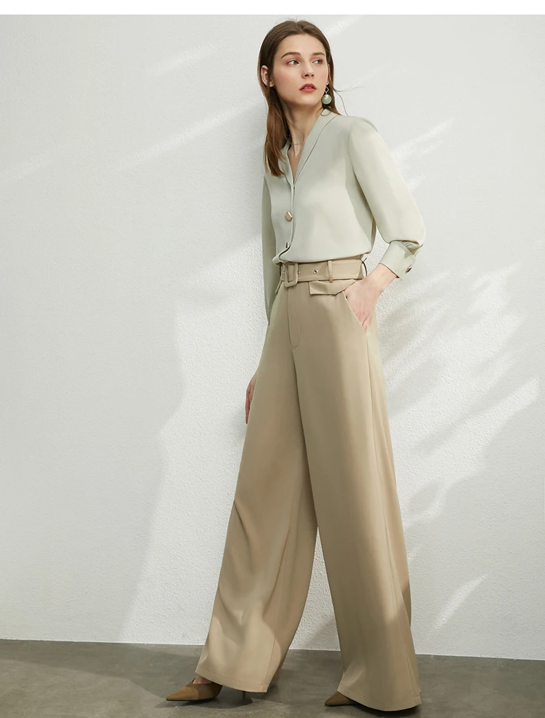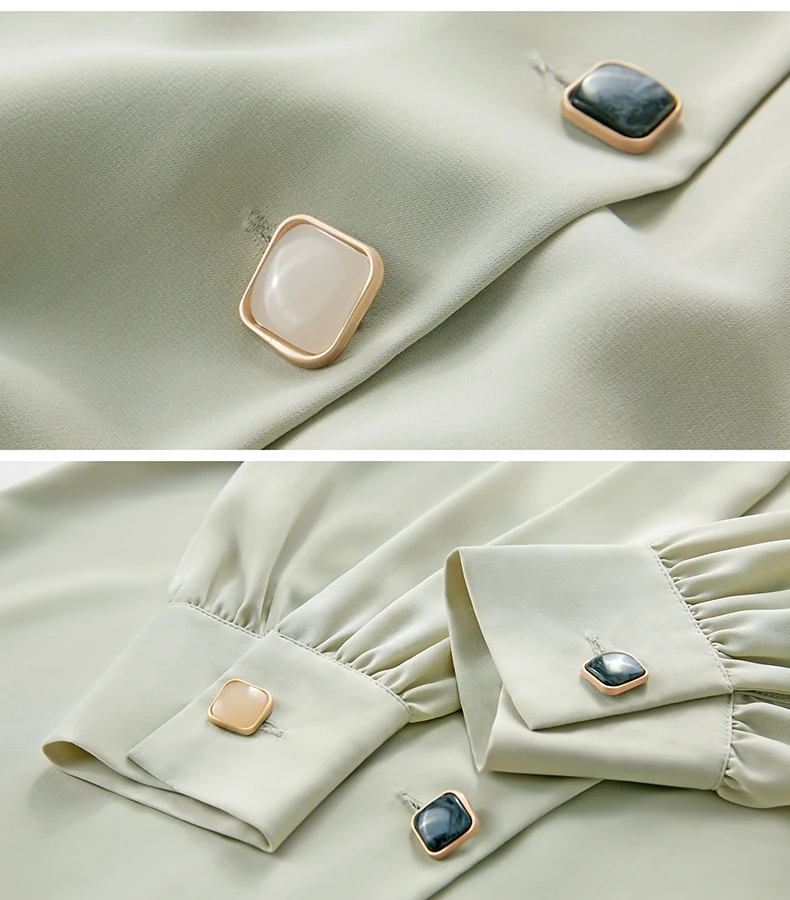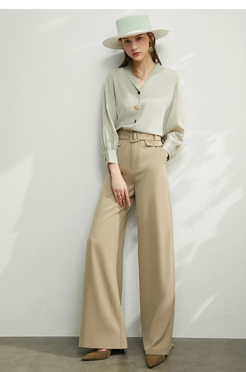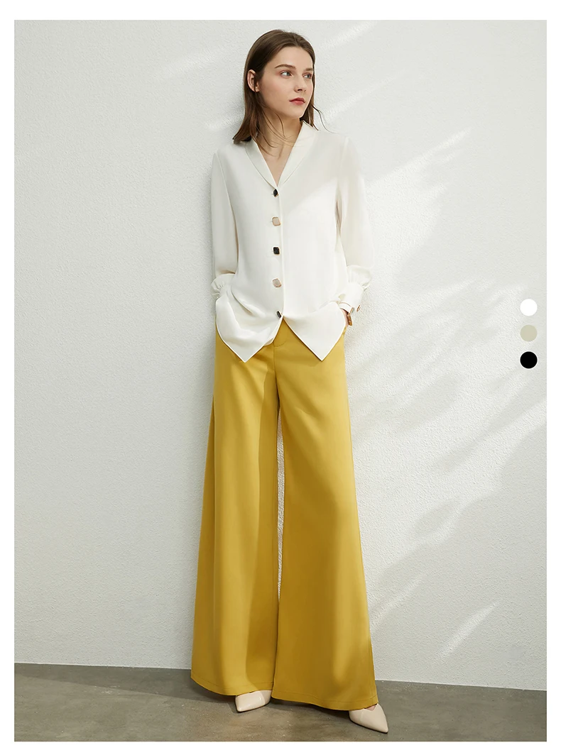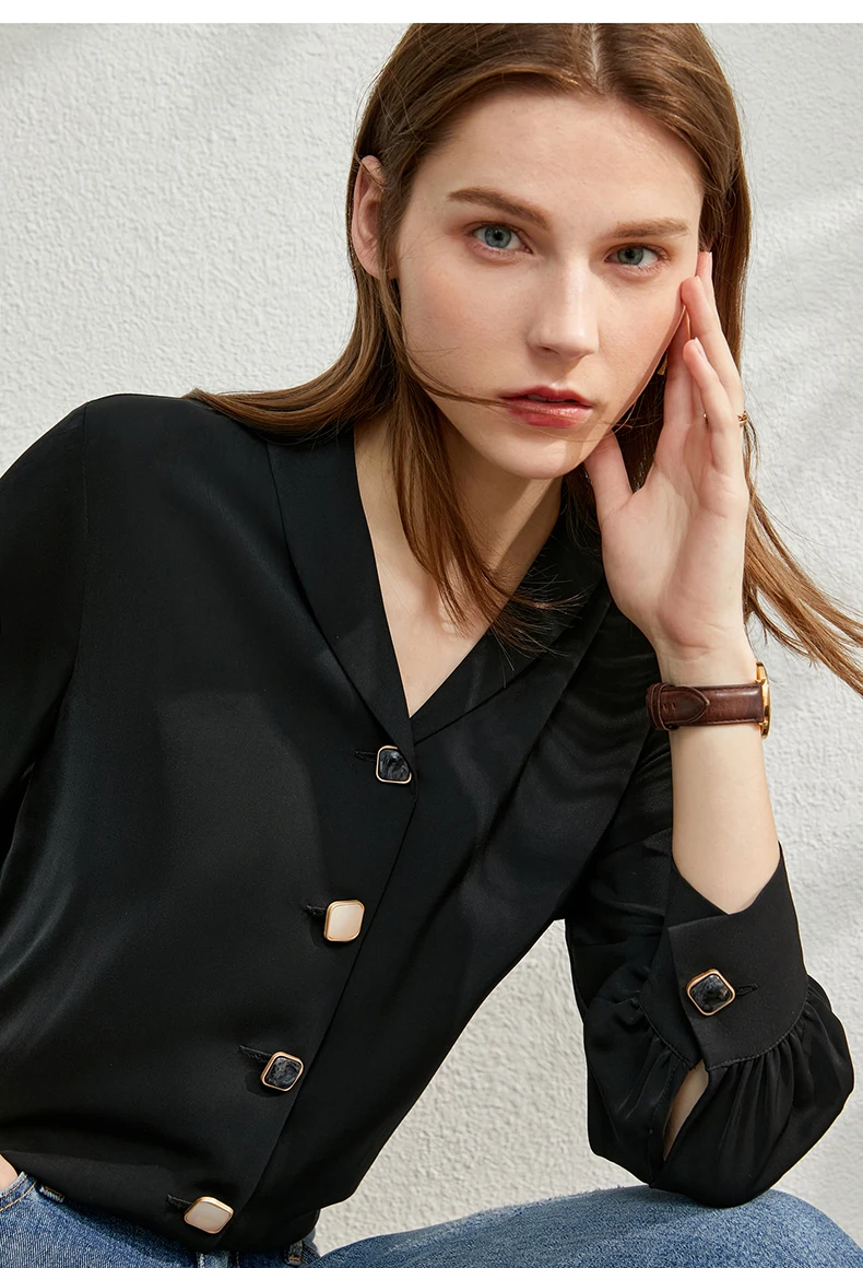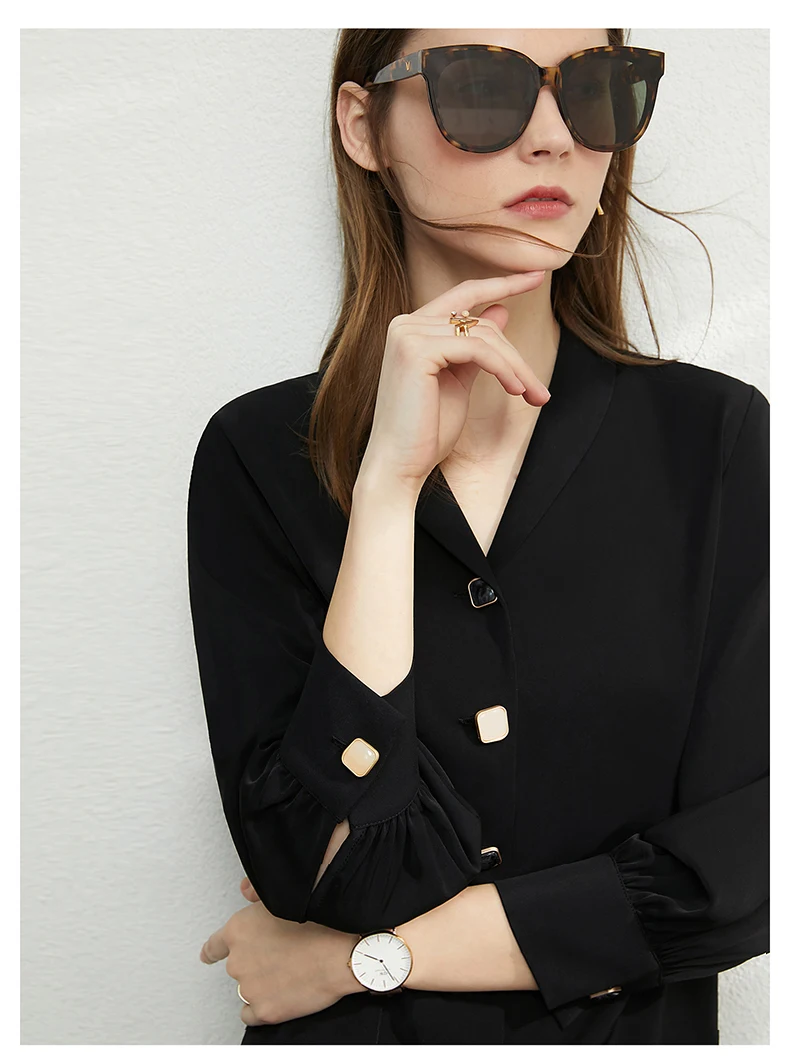 بلوزة Amii Minimalism للنساء الربيعية ذات الرقبة على شكل حرف V بلوزة شيفون سادة قمصان كاجوال للسيدات في المكتب بلوزات أنيقة للنساء 12030219 ملابس