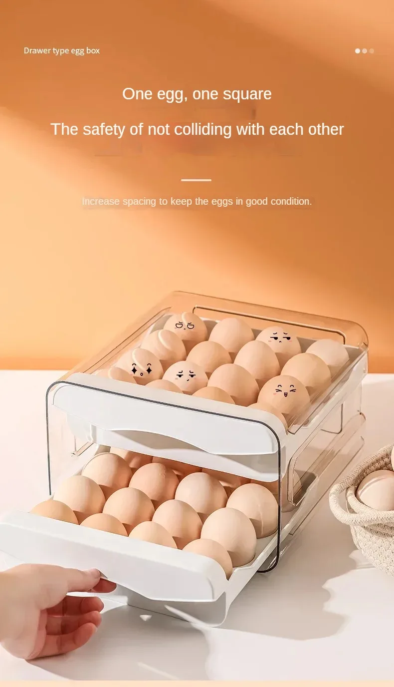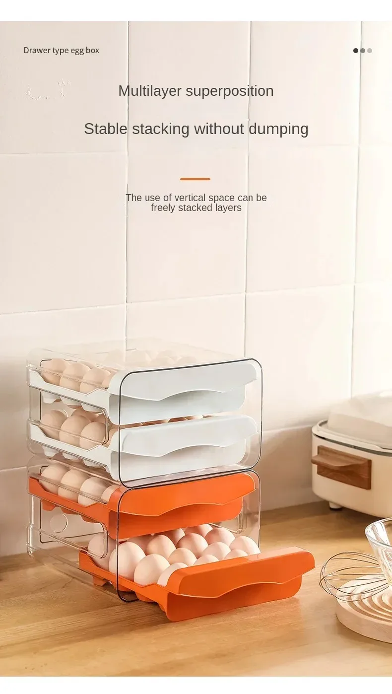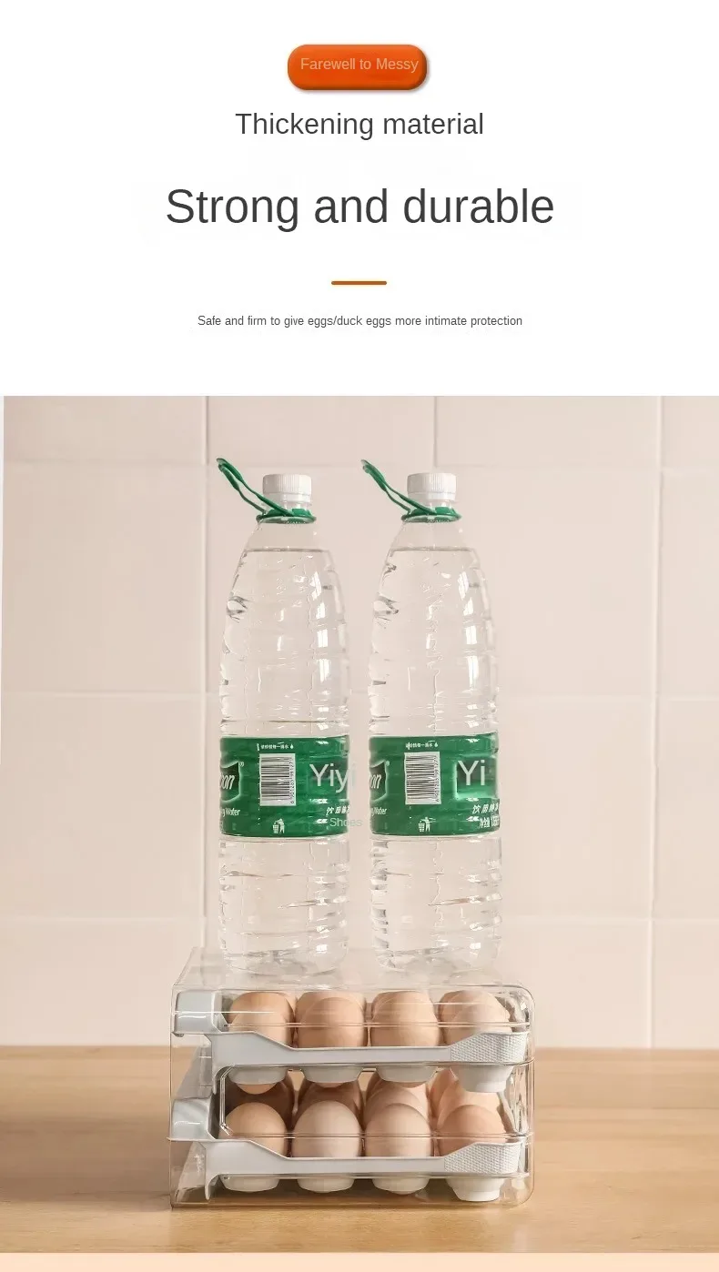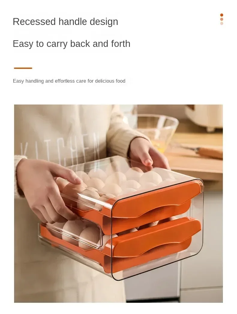 حامل رف البيض التلقائي، صندوق تخزين سلة البيض، منظم حاوية سلة البيض، موزع البيض للثلاجة للمطبخ