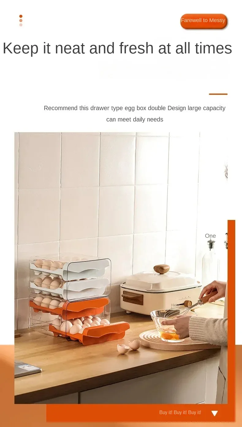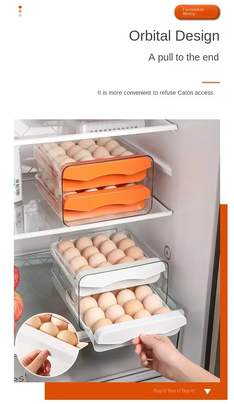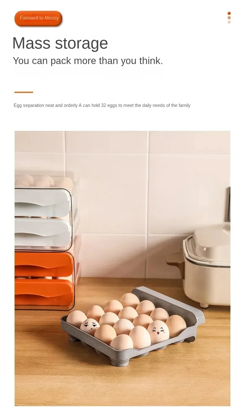 حامل رف البيض التلقائي، صندوق تخزين سلة البيض، منظم حاوية سلة البيض، موزع البيض للثلاجة للمطبخ