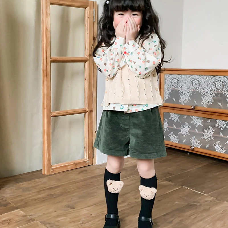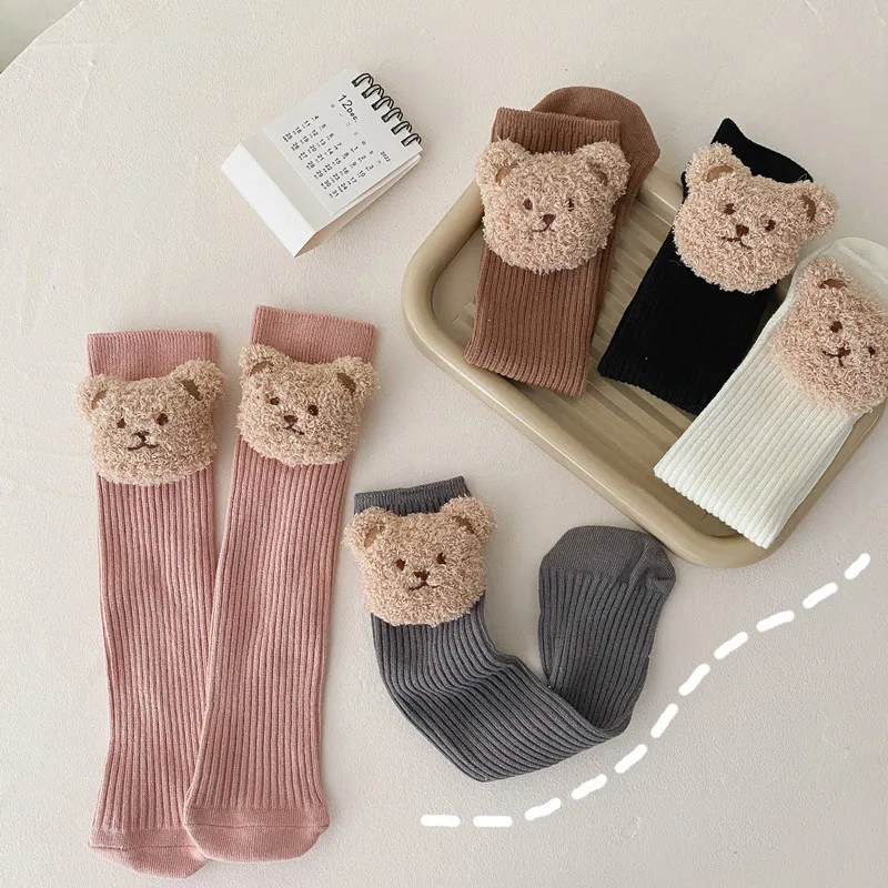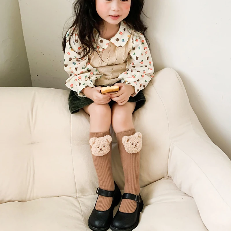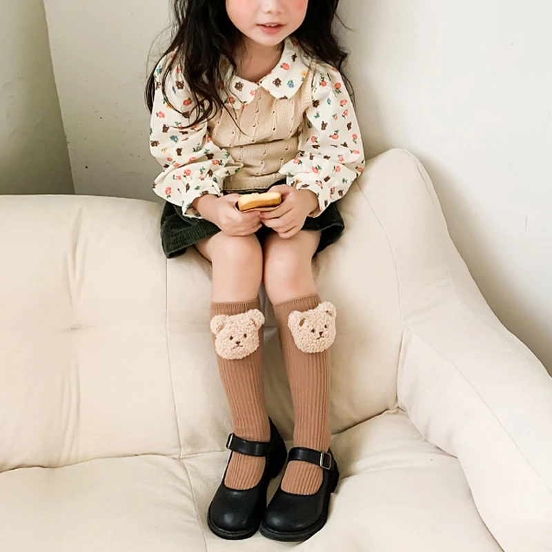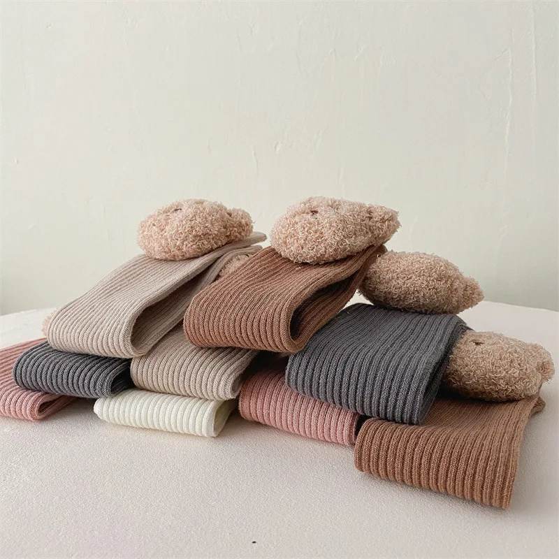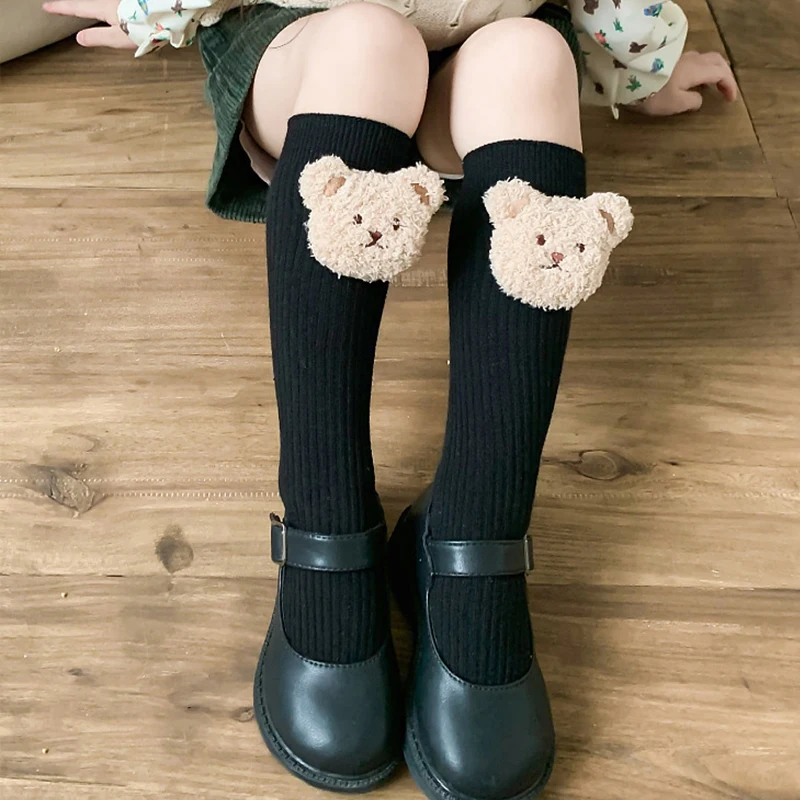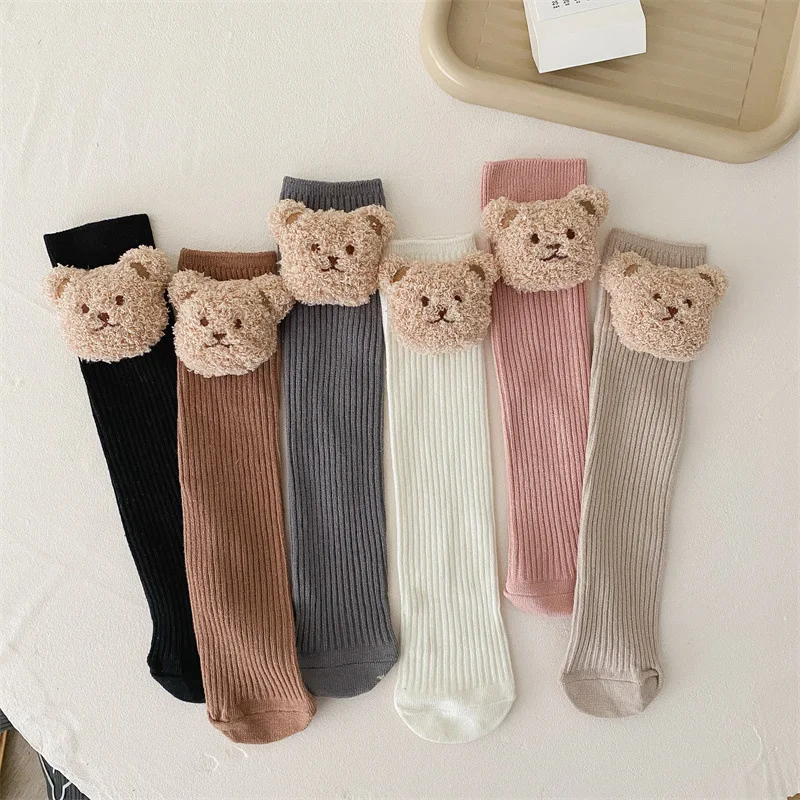 Bear Doll Children Long Tube Socks Winter Autumn Warm Kids Knee High Sock Cotton Girl Sokken Soild Color Stockings 2-8Y