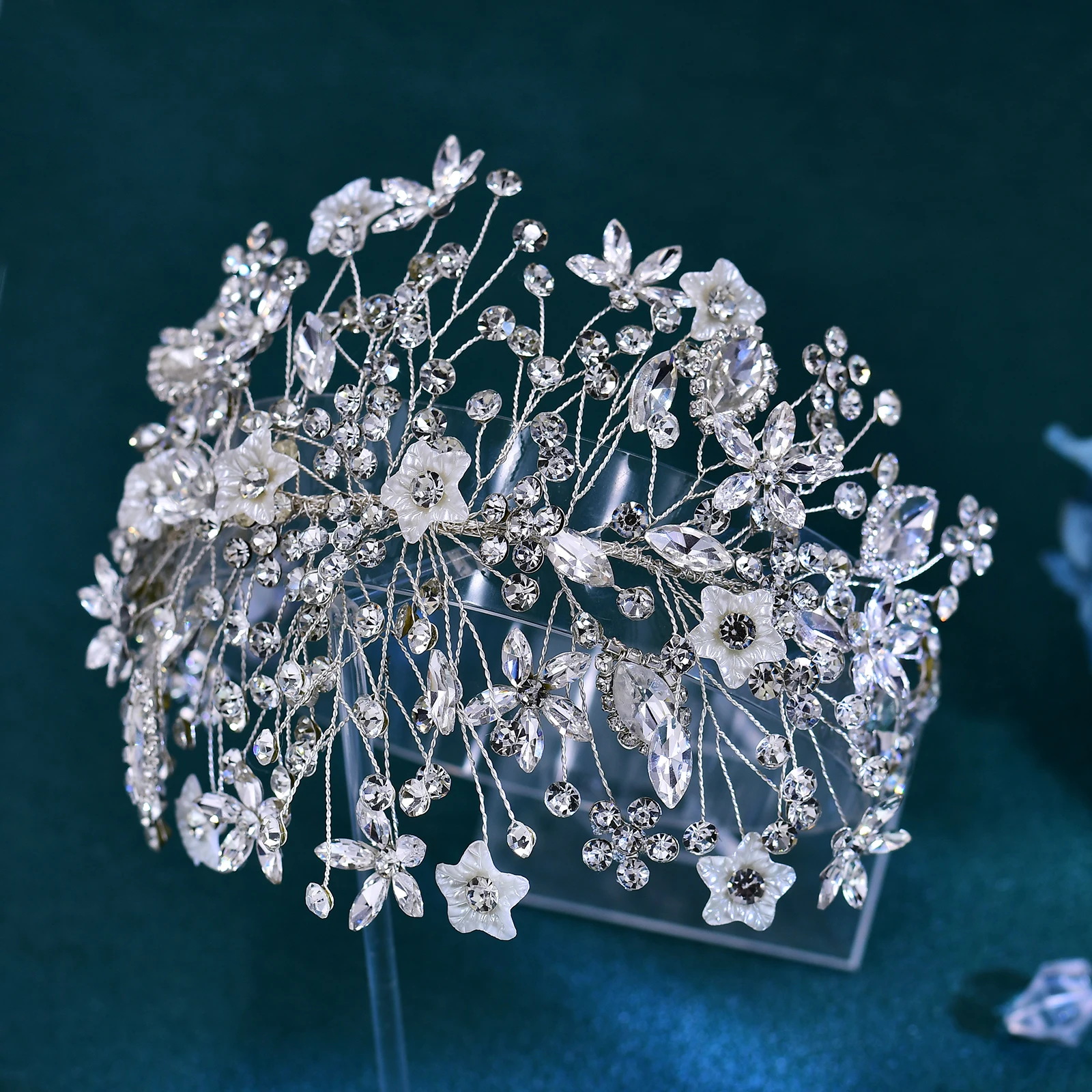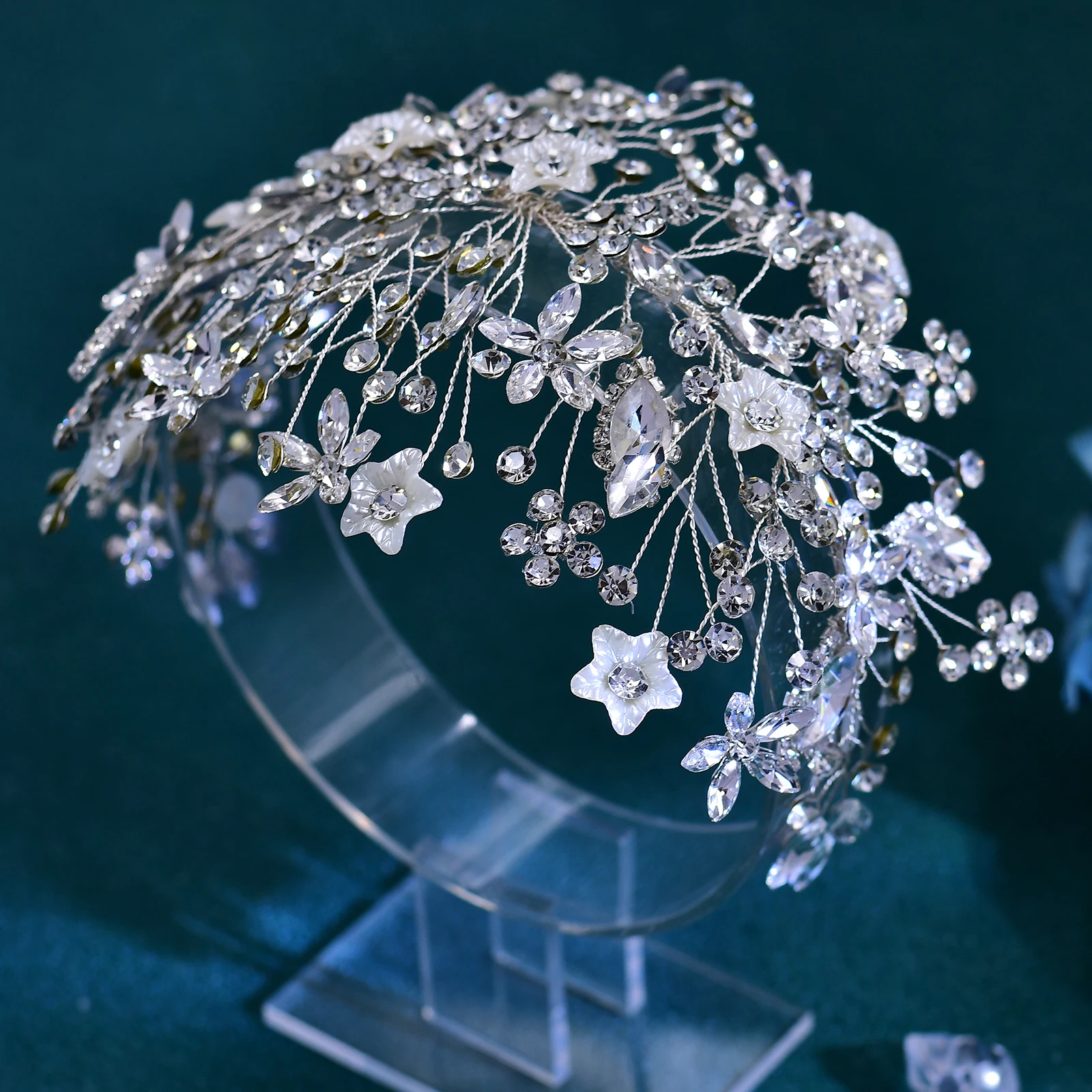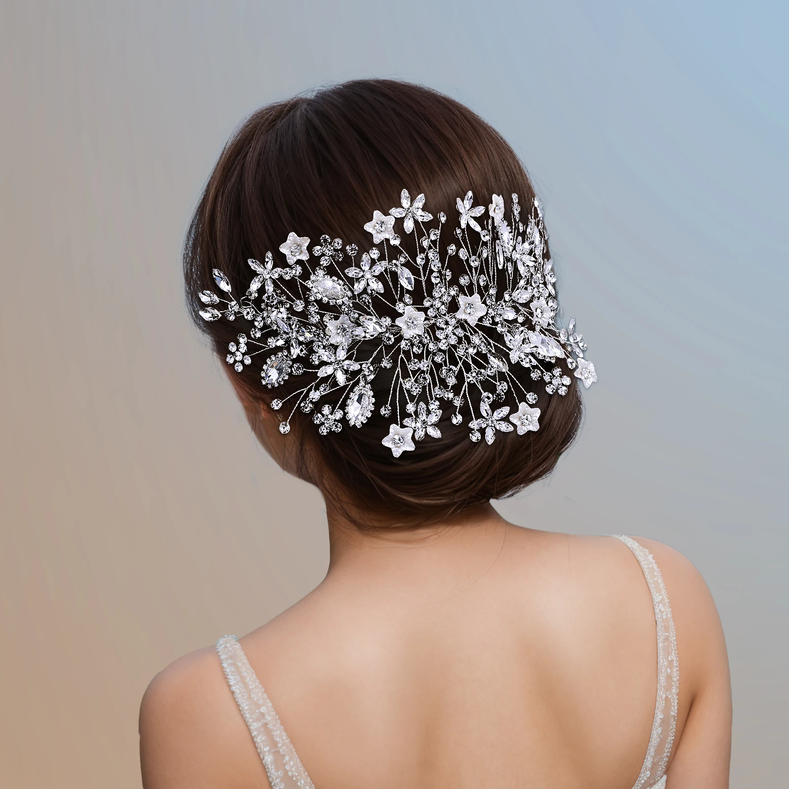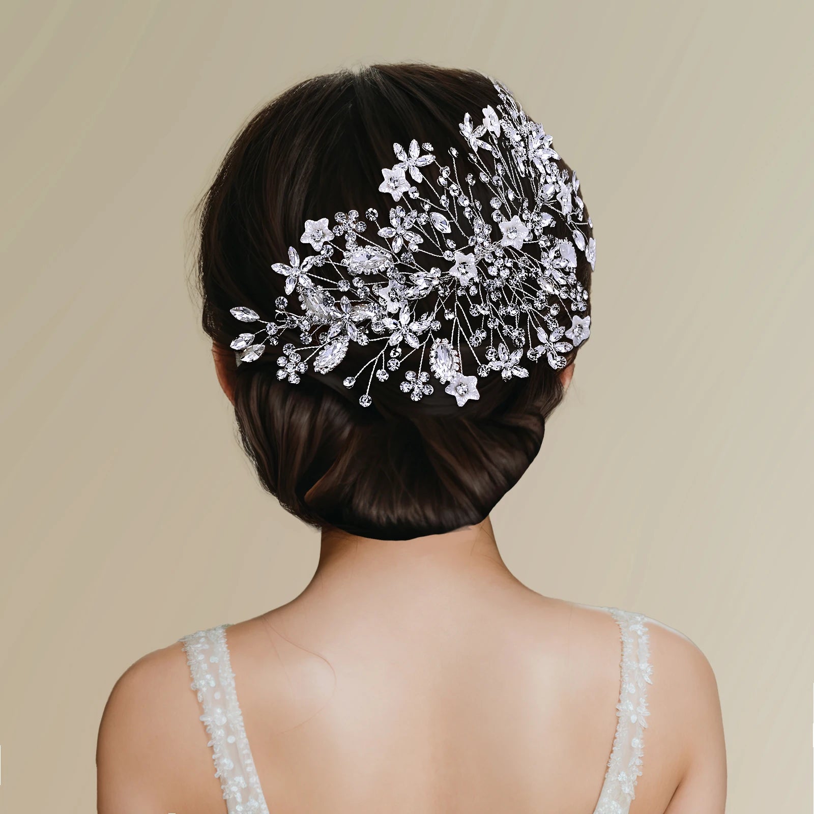 Bridal Shiny Rhinestone Flower Wedding Headwear Silver Color Elegant Bride Hairpiece Fashion Women Hair Accessories HP677