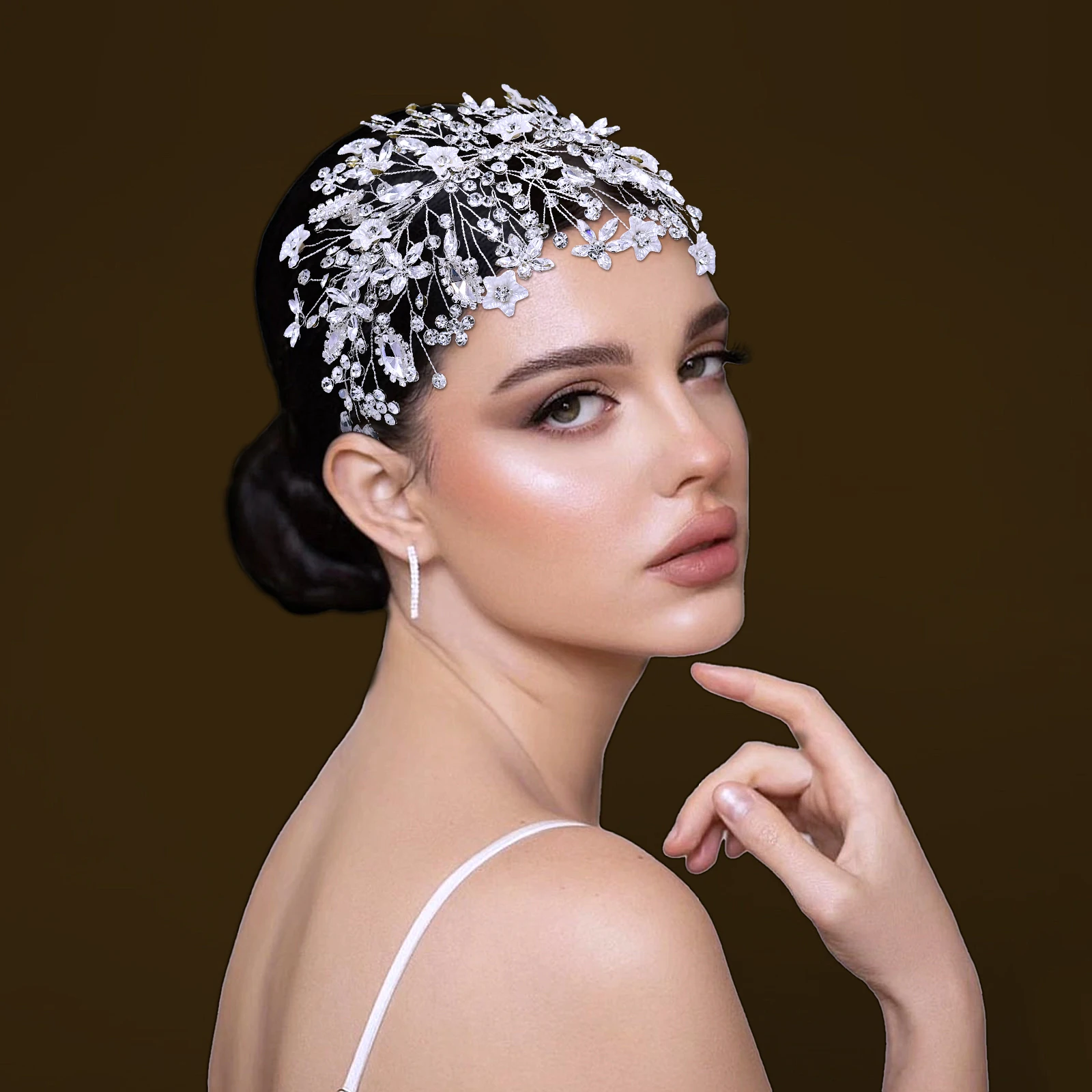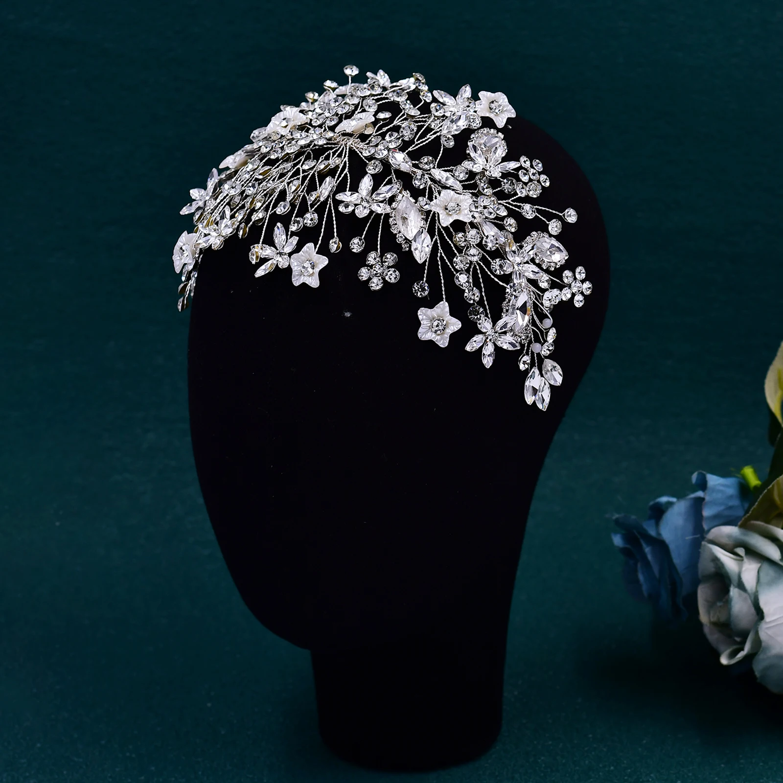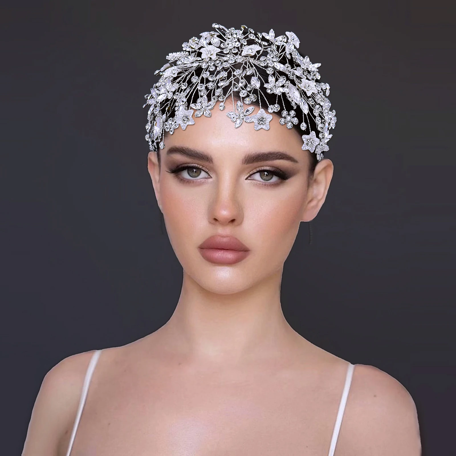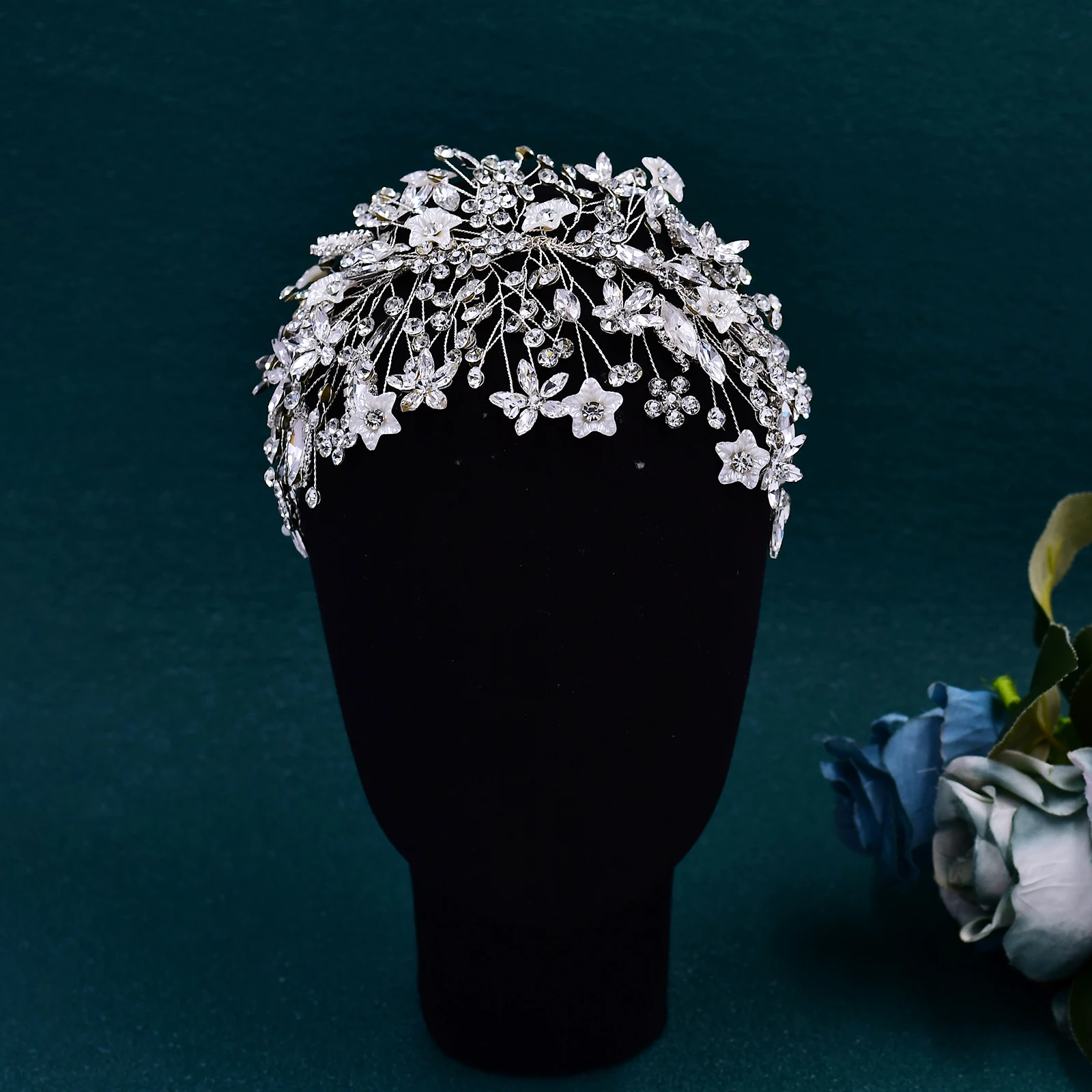 Bridal Shiny Rhinestone Flower Wedding Headwear Silver Color Elegant Bride Hairpiece Fashion Women Hair Accessories HP677