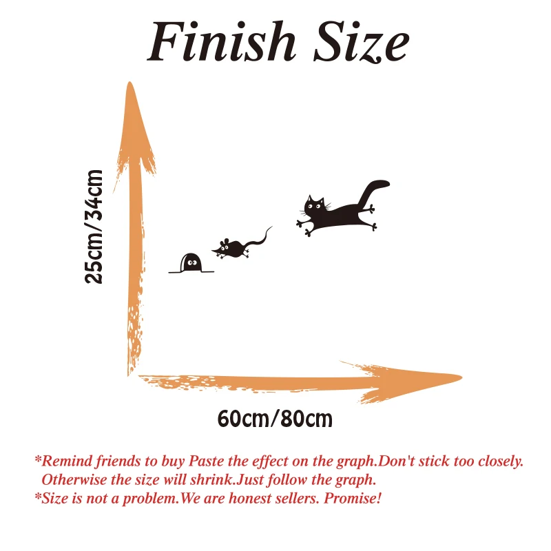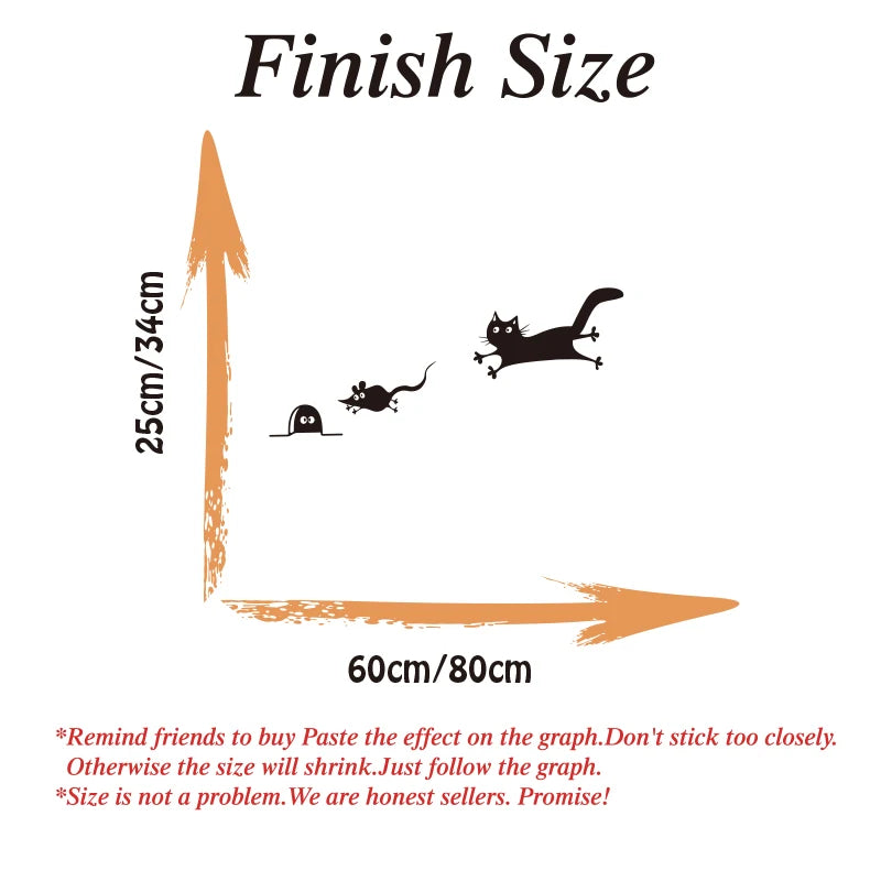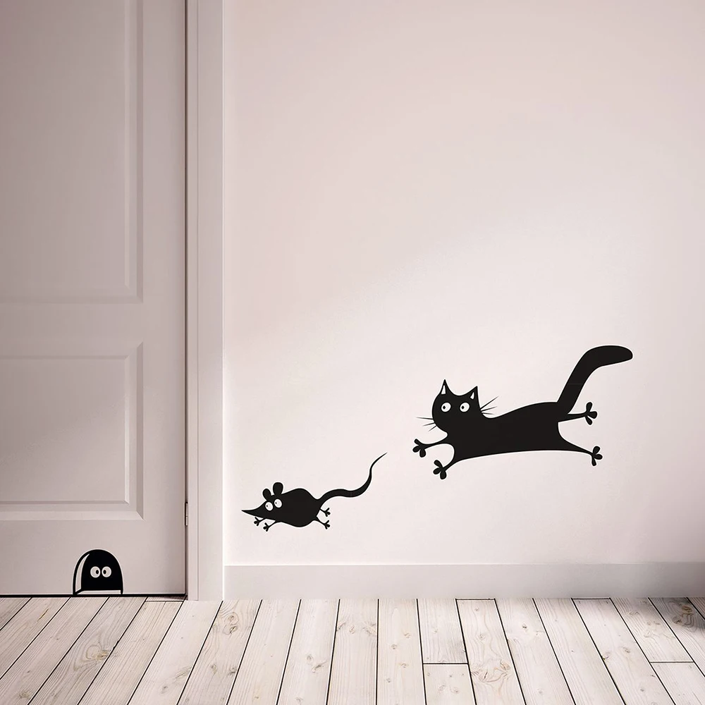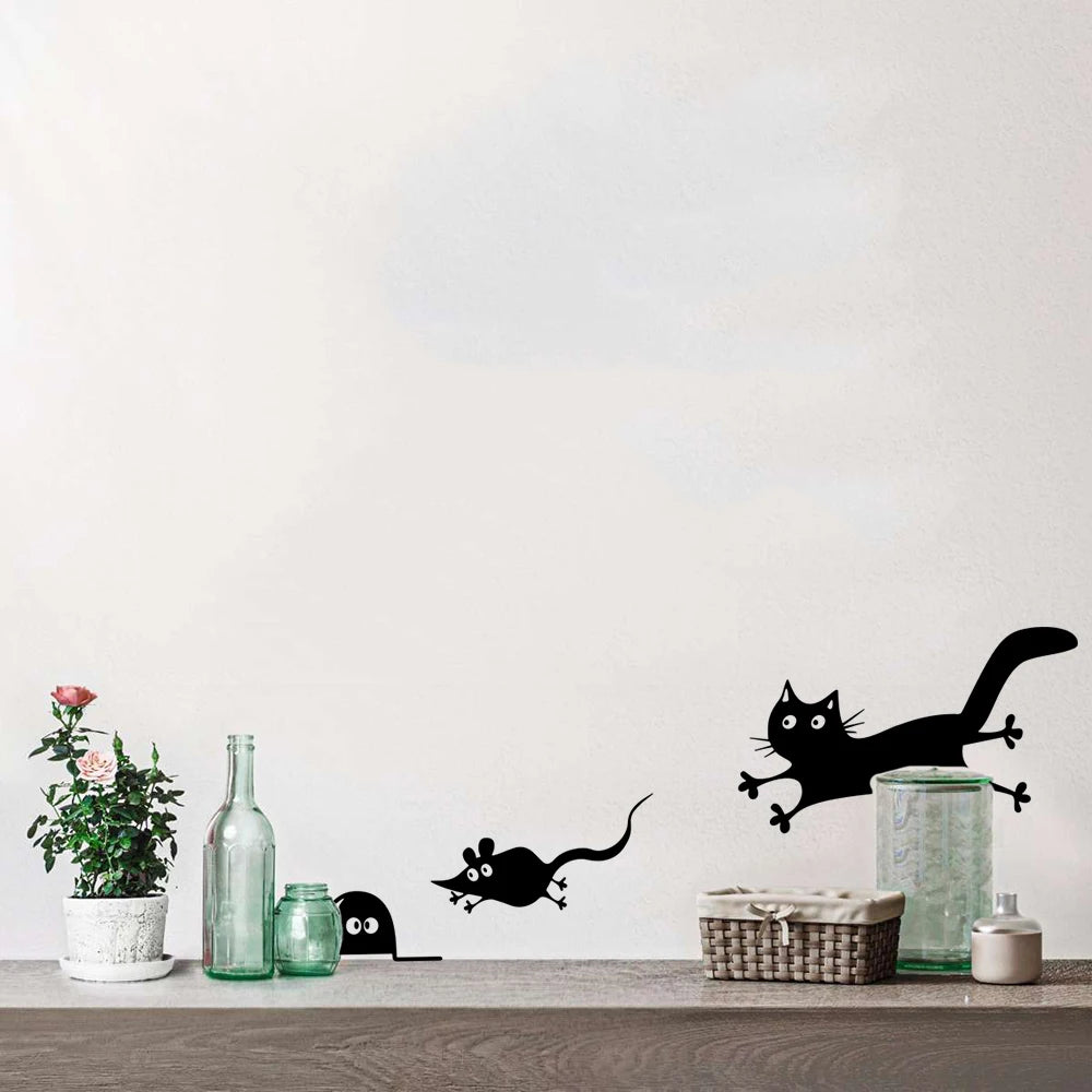 ملصق حائط على شكل فأر وقط كرتوني لغرفة المعيشة وغرفة اللعب وحيوان مضحك من الفينيل لديكور المطبخ والمنزل