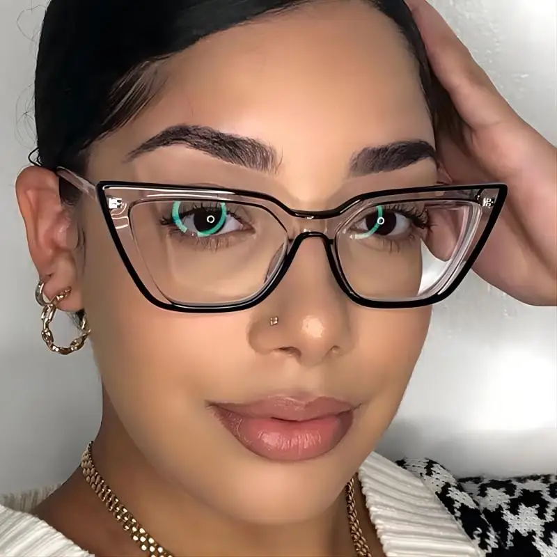 نظارات شمسية مسطحة فلورية على شكل عين القطة 2024 نظارات ركوب الدراجات النسائية الجديدة ذات الموضة المضادة للضوء الأزرق الفاخرة
