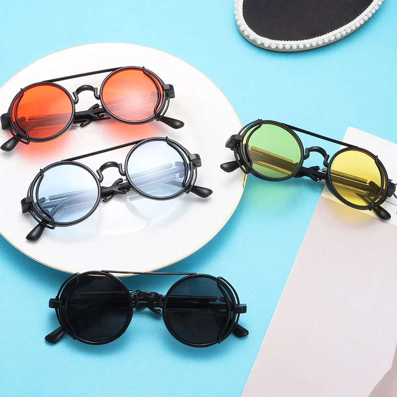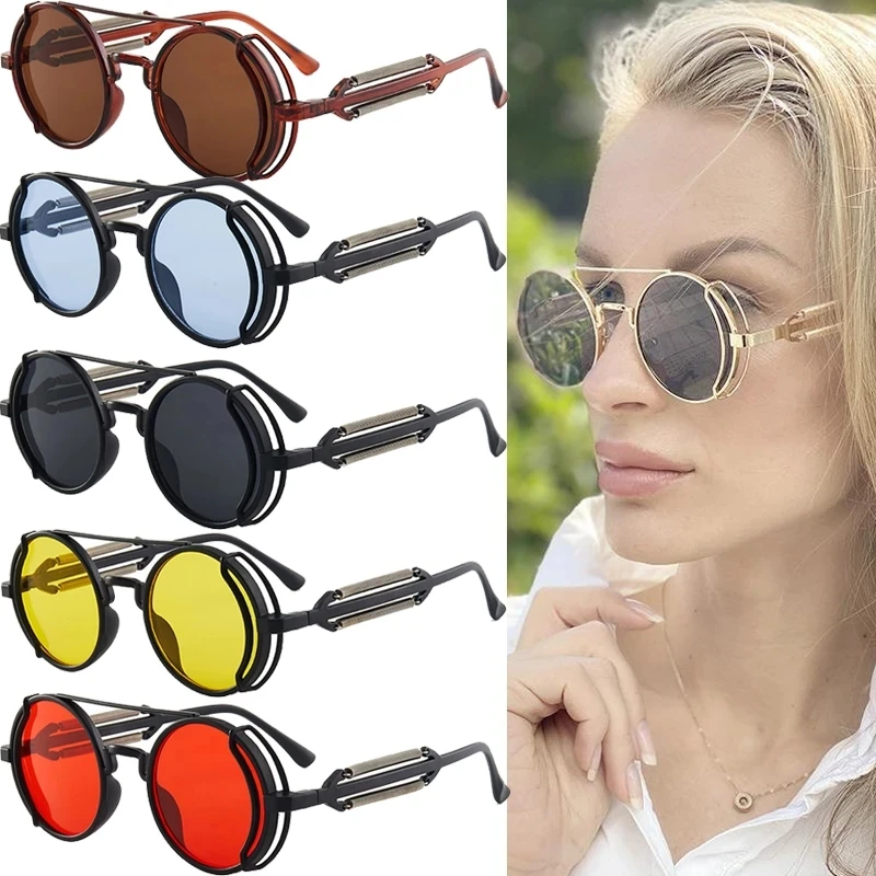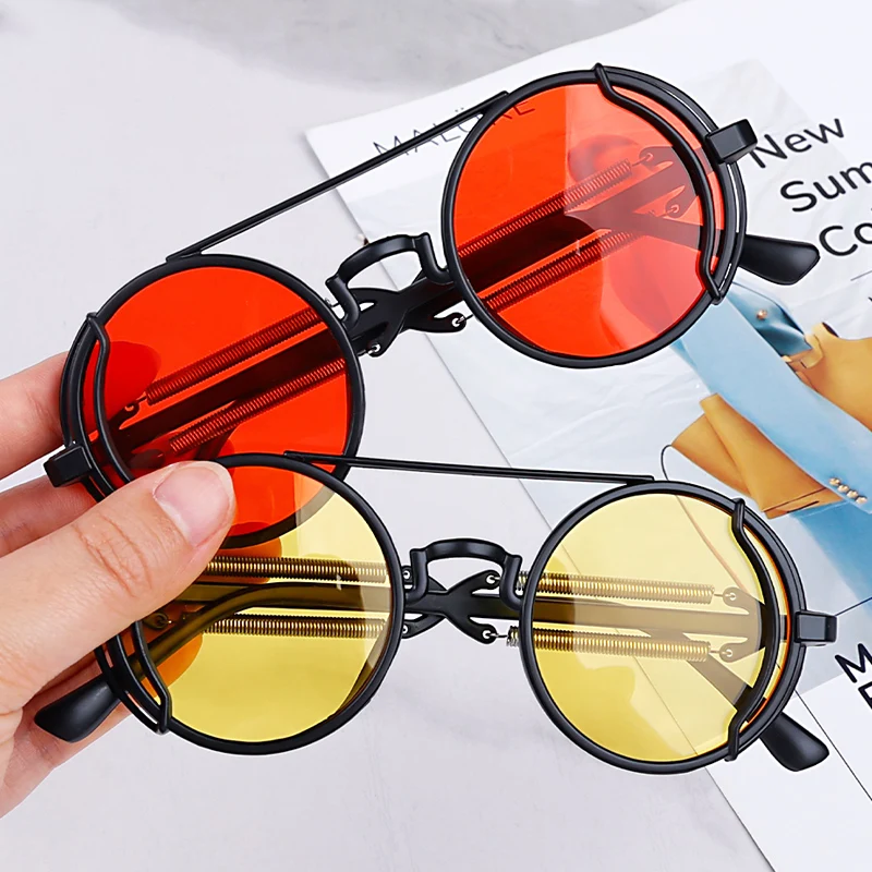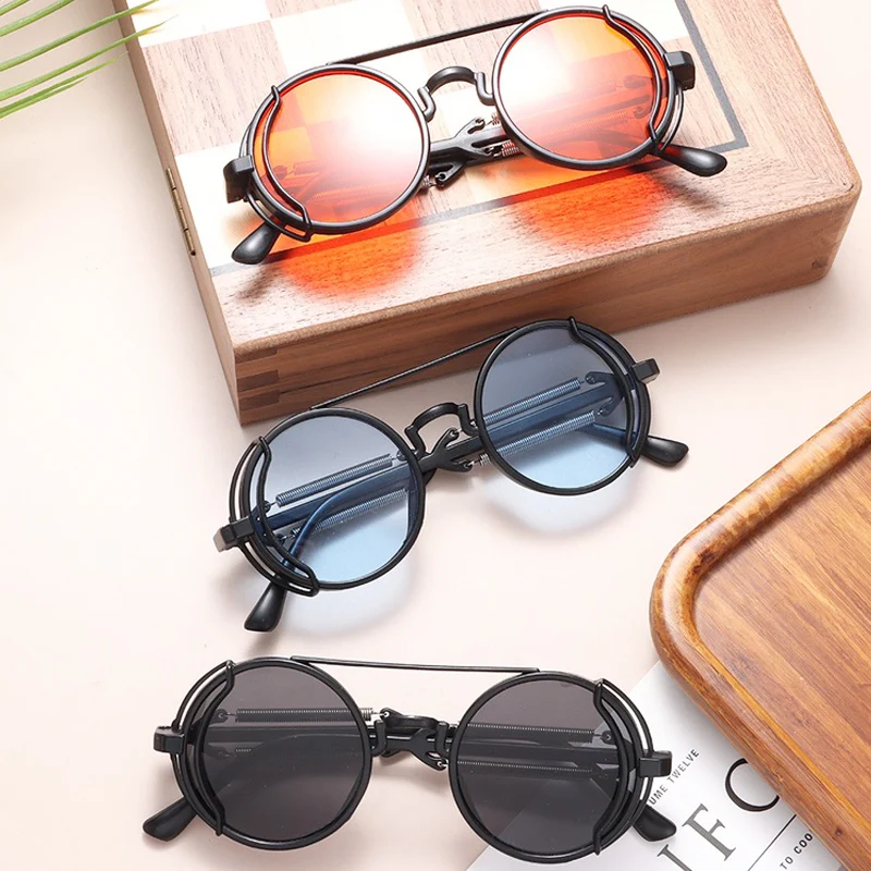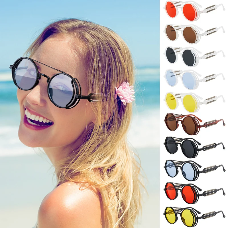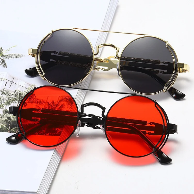 Classic Gothic Steampunk Sunglasses Double Spring Leg Glasses Men's Brand Designer Round Punk Eyewear Women UV400 Protection